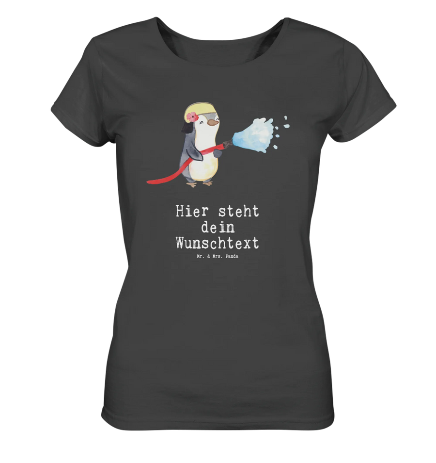 Das Personalisiertes Shirt Damen mit dem zauberhaften Motiv "Feuerwehrfrau mit Herz" aus der Berufe-Kollektion von Mr. & Mrs. Panda ist das perfekte Geschenk für alle, die eine Feuerwehrfrau in ihrem Leben haben. Egal ob zum Geburtstag, Jubiläum, Junggesellenabschied oder einfach nur als kleines Dankeschön, dieses T-Shirt ist immer eine tolle Wahl.