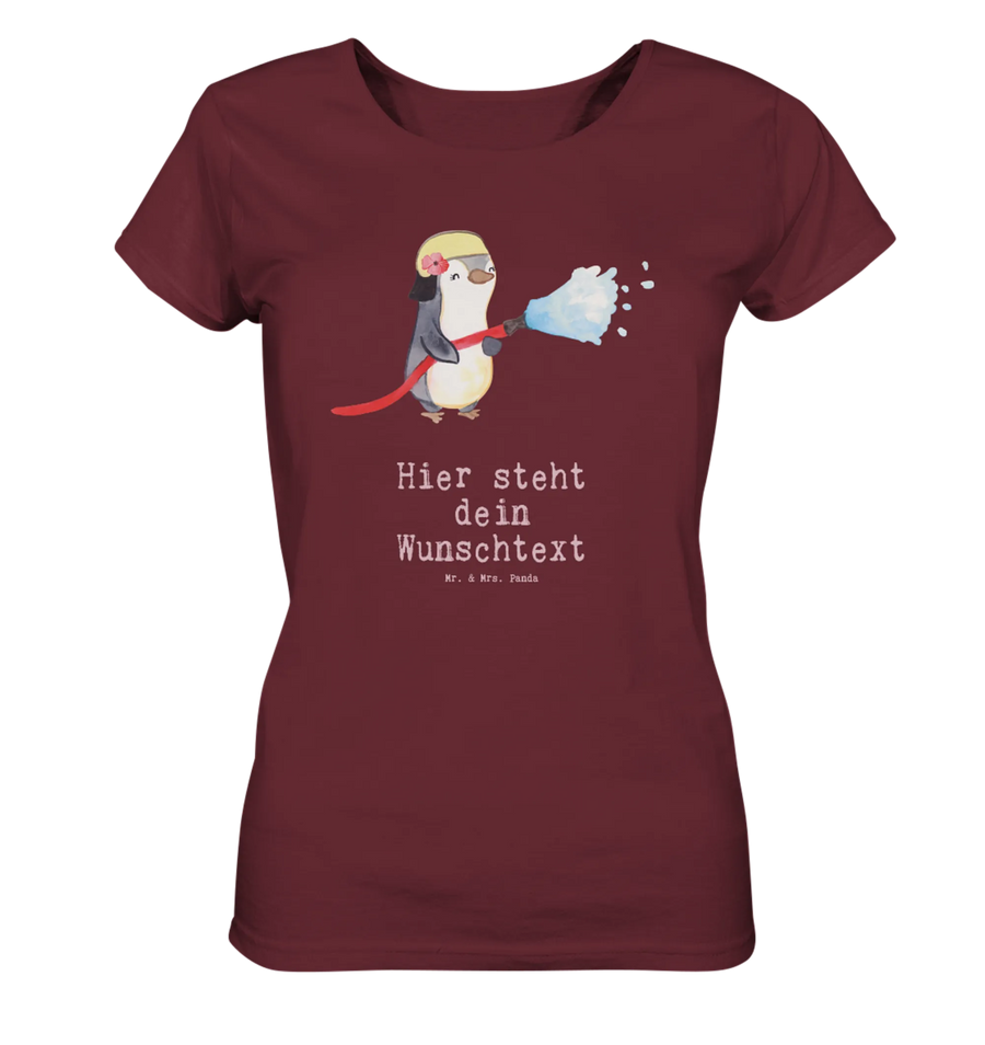 Das Personalisiertes Shirt Damen mit dem zauberhaften Motiv "Feuerwehrfrau mit Herz" aus der Berufe-Kollektion von Mr. & Mrs. Panda ist das perfekte Geschenk für alle, die eine Feuerwehrfrau in ihrem Leben haben. Egal ob zum Geburtstag, Jubiläum, Junggesellenabschied oder einfach nur als kleines Dankeschön, dieses T-Shirt ist immer eine tolle Wahl.