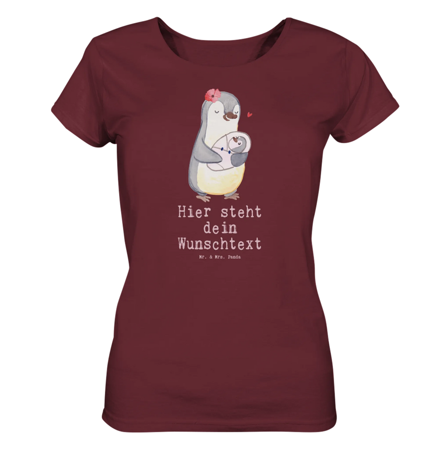 Das personalisierte Shirt für Damen von Mr. & Mrs. Panda überzeugt durch seinen einzigartigen Stil und hohen Tragekomfort. Hergestellt aus 100% BIO-Baumwolle ist es sanft zur Haut und bietet gleichzeitig die Möglichkeit, deinen Wunschtext oder Namen hinzuzufügen. Die fröhlichen Motive und Sprüche bringen Farbe in deinen Frühling und Sommer! In verschiedenen Größen erhältlich, passt es perfekt zu jeder Figur und sorgt mit seinem superweichen Stoff dafür, dass du dich rundum wohlfühlst. Beachte unsere Größentabelle, um die passende Größe zu finden. Jedes Shirt wird von Hand für dich gefertigt, was es zu einem besonderen Geschenk macht. Für die Pflege einfach bei maximal 30 °C in die Waschmaschine geben und sanfte Reinigungsmittel nutzen.