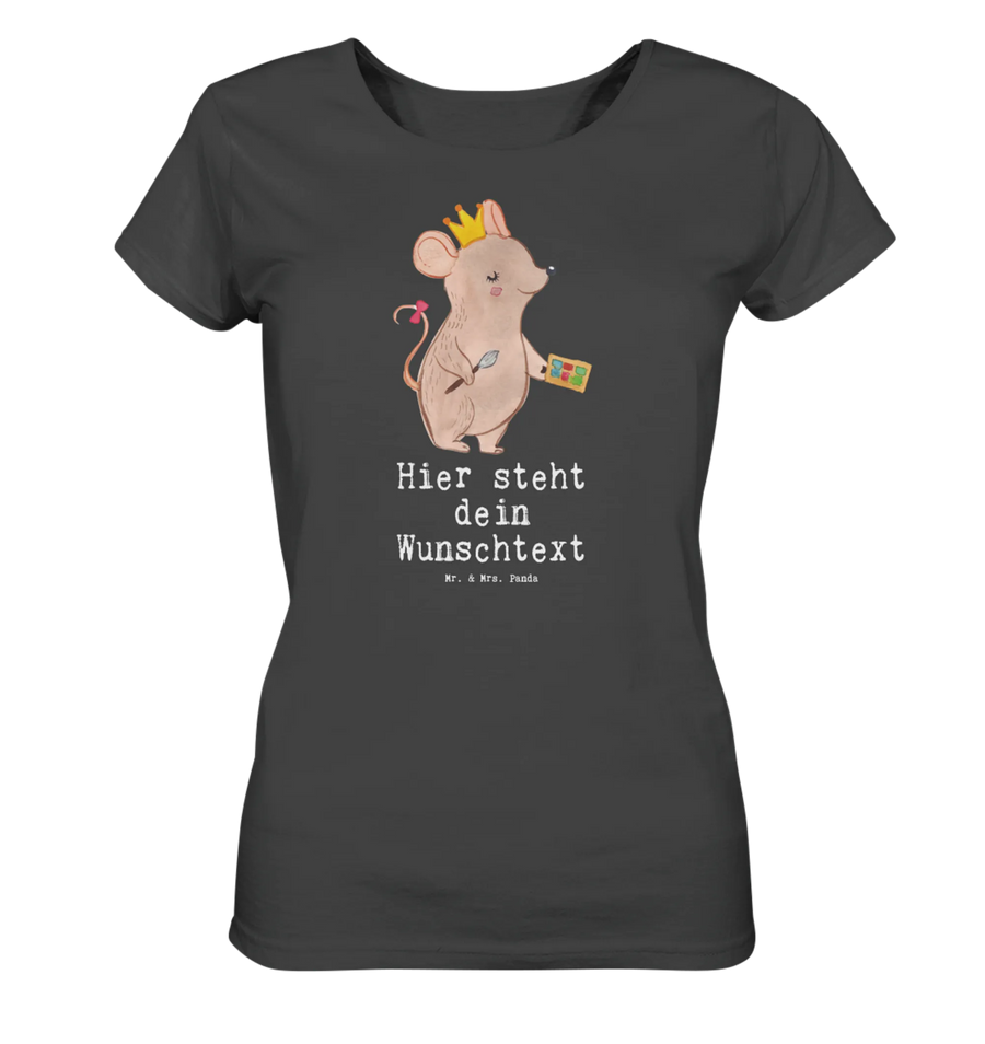 Das personalisierte Shirt Damen mit dem bezaubernden Motiv "Maskenbildnerin mit Herz" ist das perfekte Geschenk für alle kreativen Köpfe und Beauty-Liebhaberinnen unter euch. Das außergewöhnliche Design zeigt eine süße Maus, die mit einem Lidschatten und einem Schminkpinsel ausgestattet ist. Perfekt zum Junggesellenabschied, Geburtstag oder zu Jubiläen!
