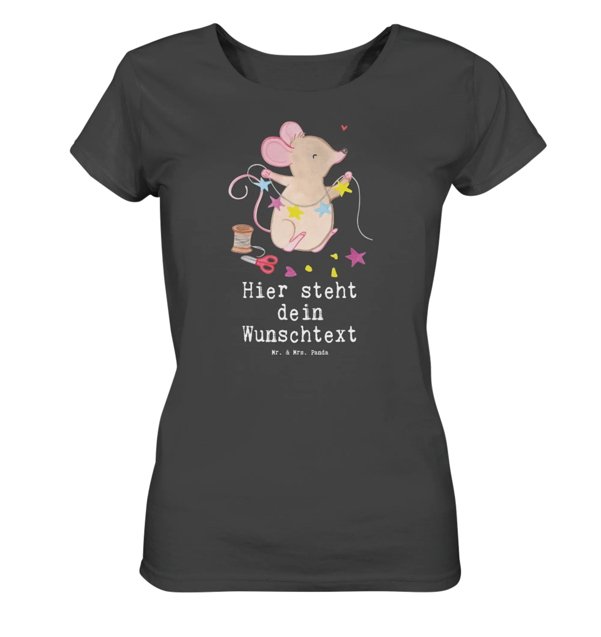 Das personalisierte Shirt für Damen von Mr. & Mrs. Panda überzeugt durch seinen einzigartigen Stil und hohen Tragekomfort. Hergestellt aus 100% BIO-Baumwolle ist es sanft zur Haut und bietet gleichzeitig die Möglichkeit, deinen Wunschtext oder Namen hinzuzufügen. Die fröhlichen Motive und Sprüche bringen Farbe in deinen Frühling und Sommer! In verschiedenen Größen erhältlich, passt es perfekt zu jeder Figur und sorgt mit seinem superweichen Stoff dafür, dass du dich rundum wohlfühlst. Beachte unsere Größentabelle, um die passende Größe zu finden. Jedes Shirt wird von Hand für dich gefertigt, was es zu einem besonderen Geschenk macht. Für die Pflege einfach bei maximal 30 °C in die Waschmaschine geben und sanfte Reinigungsmittel nutzen.
