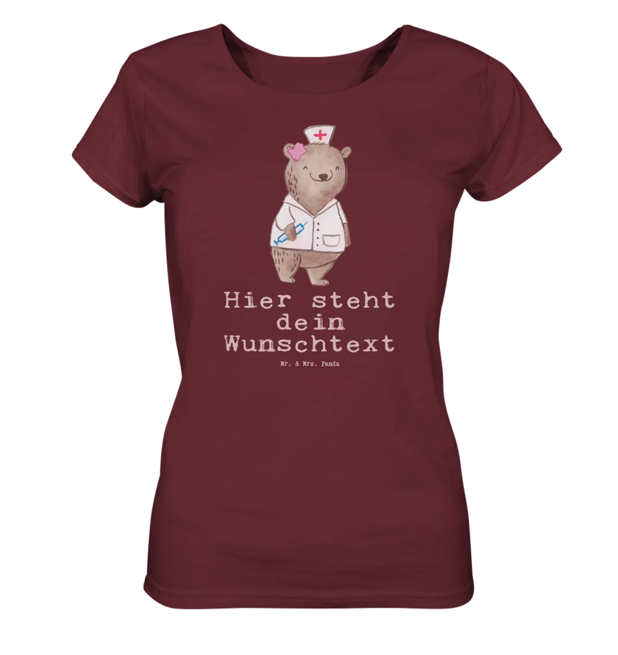 Das Shirt ist aus 100% Baumwolle gefertigt und besticht durch sein komfortables Tragegefühl. Das edle Burgunderrot sorgt für einen eleganten Auftritt, egal ob bei der Arbeit oder in der Freizeit. Besonders schön ist das liebevoll gestaltete Motiv, das von Mrs. Panda handgezeichnet wurde. Der süße Bär in einem weißen Kittel mit einer Spritze in der Hand bringt sicher jedes Herz zum Schmelzen!