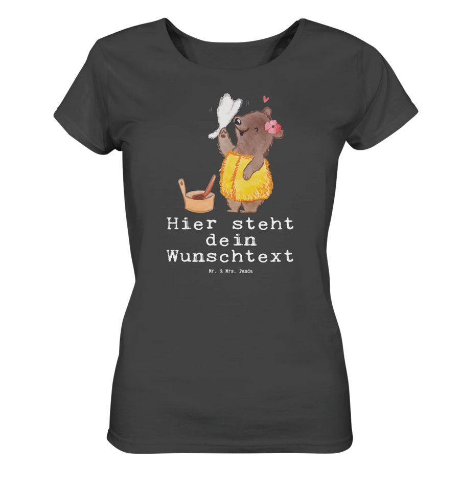 Das personalisierte Shirt für Damen von Mr. & Mrs. Panda überzeugt durch seinen einzigartigen Stil und hohen Tragekomfort. Hergestellt aus 100% BIO-Baumwolle ist es sanft zur Haut und bietet gleichzeitig die Möglichkeit, deinen Wunschtext oder Namen hinzuzufügen. Die fröhlichen Motive und Sprüche bringen Farbe in deinen Frühling und Sommer! In verschiedenen Größen erhältlich, passt es perfekt zu jeder Figur und sorgt mit seinem superweichen Stoff dafür, dass du dich rundum wohlfühlst. Beachte unsere Größentabelle, um die passende Größe zu finden. Jedes Shirt wird von Hand für dich gefertigt, was es zu einem besonderen Geschenk macht. Für die Pflege einfach bei maximal 30 °C in die Waschmaschine geben und sanfte Reinigungsmittel nutzen.