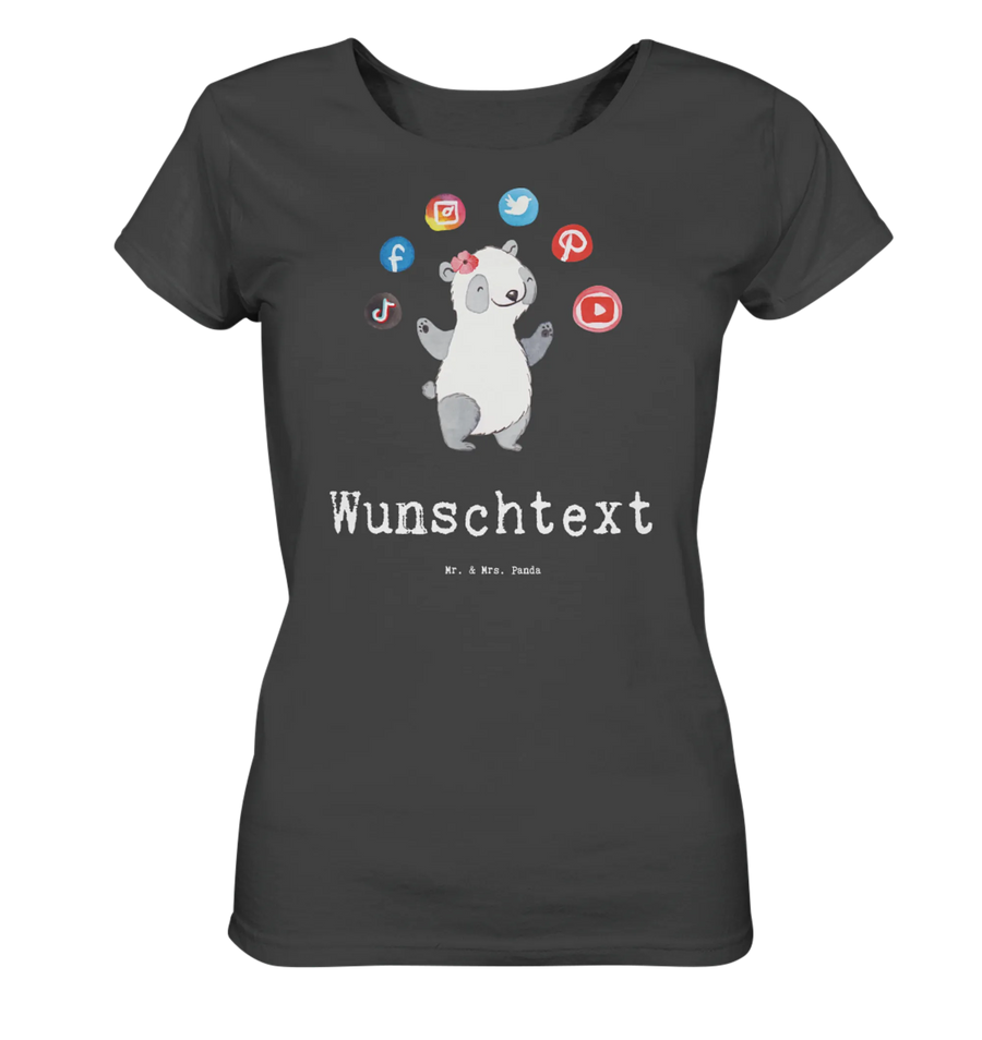 Das personalisierte Shirt für Damen von Mr. & Mrs. Panda überzeugt durch seinen einzigartigen Stil und hohen Tragekomfort. Hergestellt aus 100% BIO-Baumwolle ist es sanft zur Haut und bietet gleichzeitig die Möglichkeit, deinen Wunschtext oder Namen hinzuzufügen. Die fröhlichen Motive und Sprüche bringen Farbe in deinen Frühling und Sommer! In verschiedenen Größen erhältlich, passt es perfekt zu jeder Figur und sorgt mit seinem superweichen Stoff dafür, dass du dich rundum wohlfühlst. Beachte unsere Größentabelle, um die passende Größe zu finden. Jedes Shirt wird von Hand für dich gefertigt, was es zu einem besonderen Geschenk macht. Für die Pflege einfach bei maximal 30 °C in die Waschmaschine geben und sanfte Reinigungsmittel nutzen.