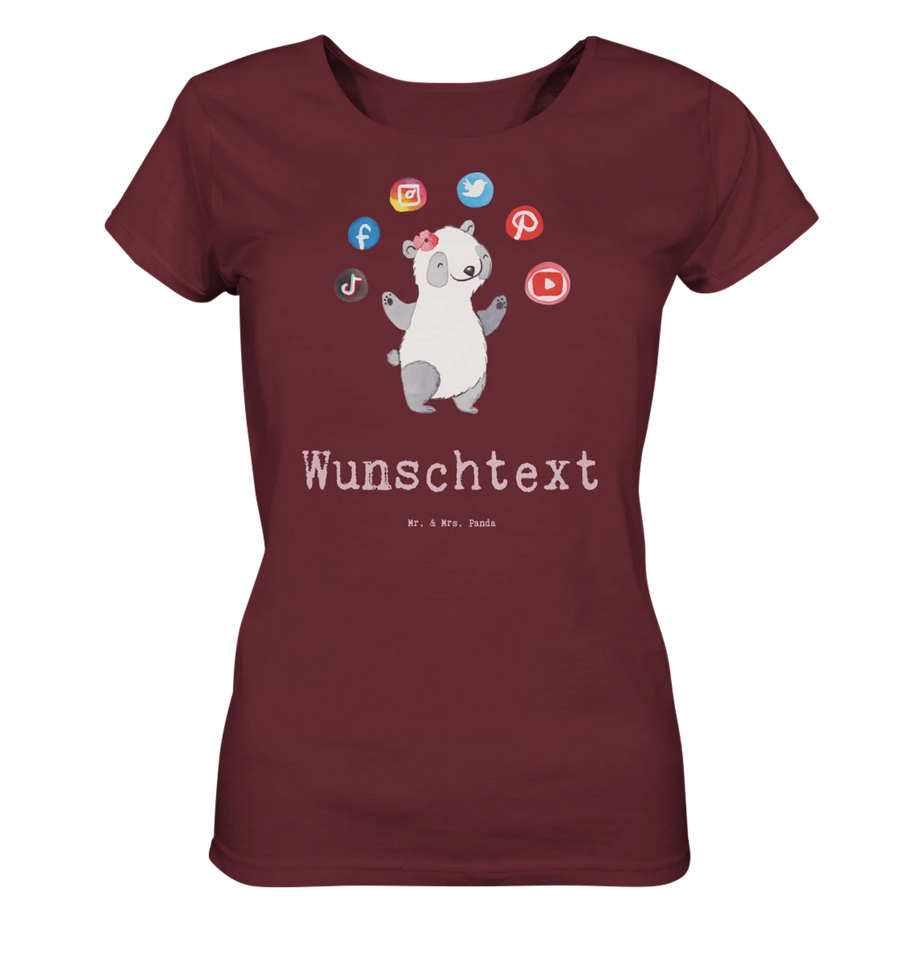 Das personalisierte Shirt "Social Media Managerin mit Herz" von Mr. & Mrs. Panda ist das perfekte Geschenk für alle Frauen, die in der aufregenden Welt der sozialen Medien arbeiten. Mit einem charmanten Motiv eines niedlichen Pandas, der mit Social Media Icons jongliert, bringt dieses T-Shirt nicht nur Freude, sondern auch eine Portion Humor in den Alltag. Ein ideales Geschenk zum Junggesellenabschied, Jubiläum oder einfach zum Geburtstag!