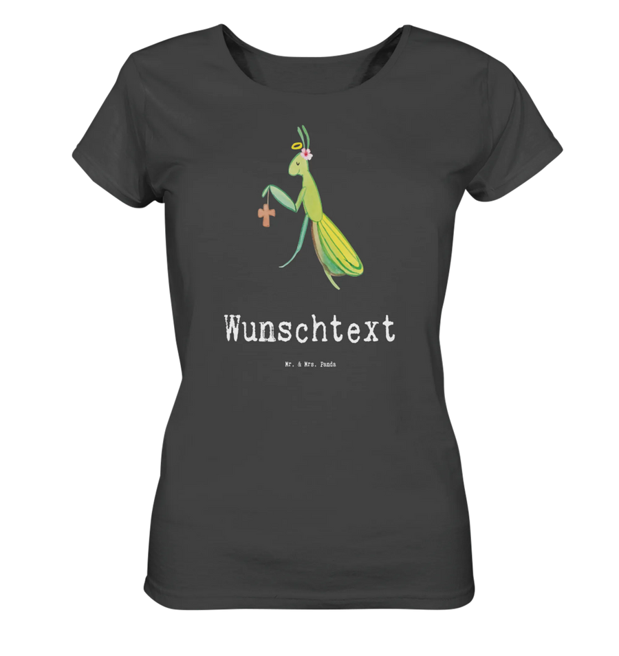 Das personalisierte Shirt Damen 'Theologin mit Herz' aus der Berufe Kollektion von Mr. & Mrs. Panda ist der perfekte Begleiter für alle Theologinnen, die ihren Beruf mit Leidenschaft ausüben! Mit dem liebevollen Motiv einer süßen Gottesanbeterin, die einen Heiligenschein über dem Kopf trägt und ein Kreuz in der Hand hält, wird dieses T-Shirt zum echten Hingucker.