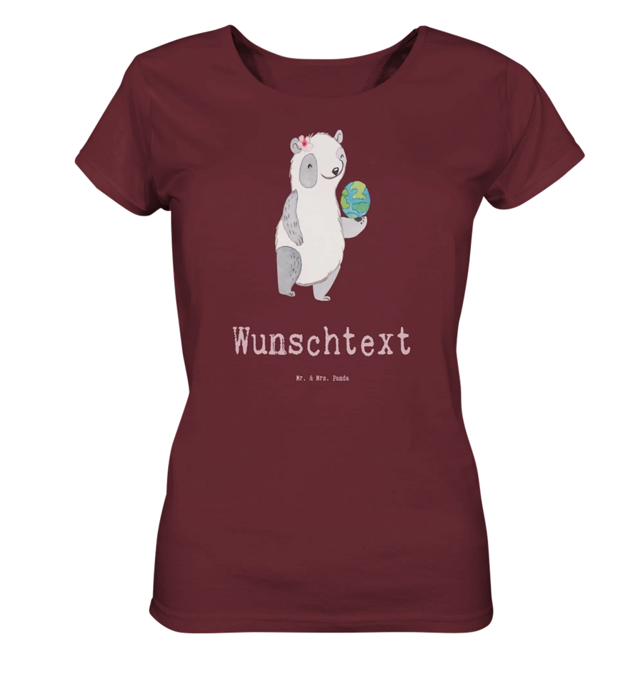 Das personalisierte Shirt für die Touristikkauffrau mit Herz ist das perfekte Geschenk, wenn Du jemandem eine besondere Freude machen möchtest! Dieses T-Shirt aus 100% hochwertiger Baumwolle ist nicht nur bequem, sondern auch ein echter Hingucker, dank des süßen Motivs eines weiblichen Pandas mit einer Weltkugel in der Hand. Es wird Teil der kreativen Berufe Kollektion von Mr. & Mrs. Panda und bringt Freude in den Arbeitsalltag Deiner Lieblings-Touristikkauffrau.