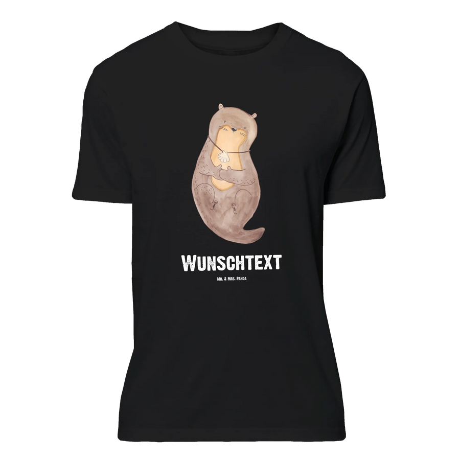 Personalisiertes T-Shirt Otter mit Muschelmedaillon - Größe XXL Personalisiertes T-Shirt - Schwarz