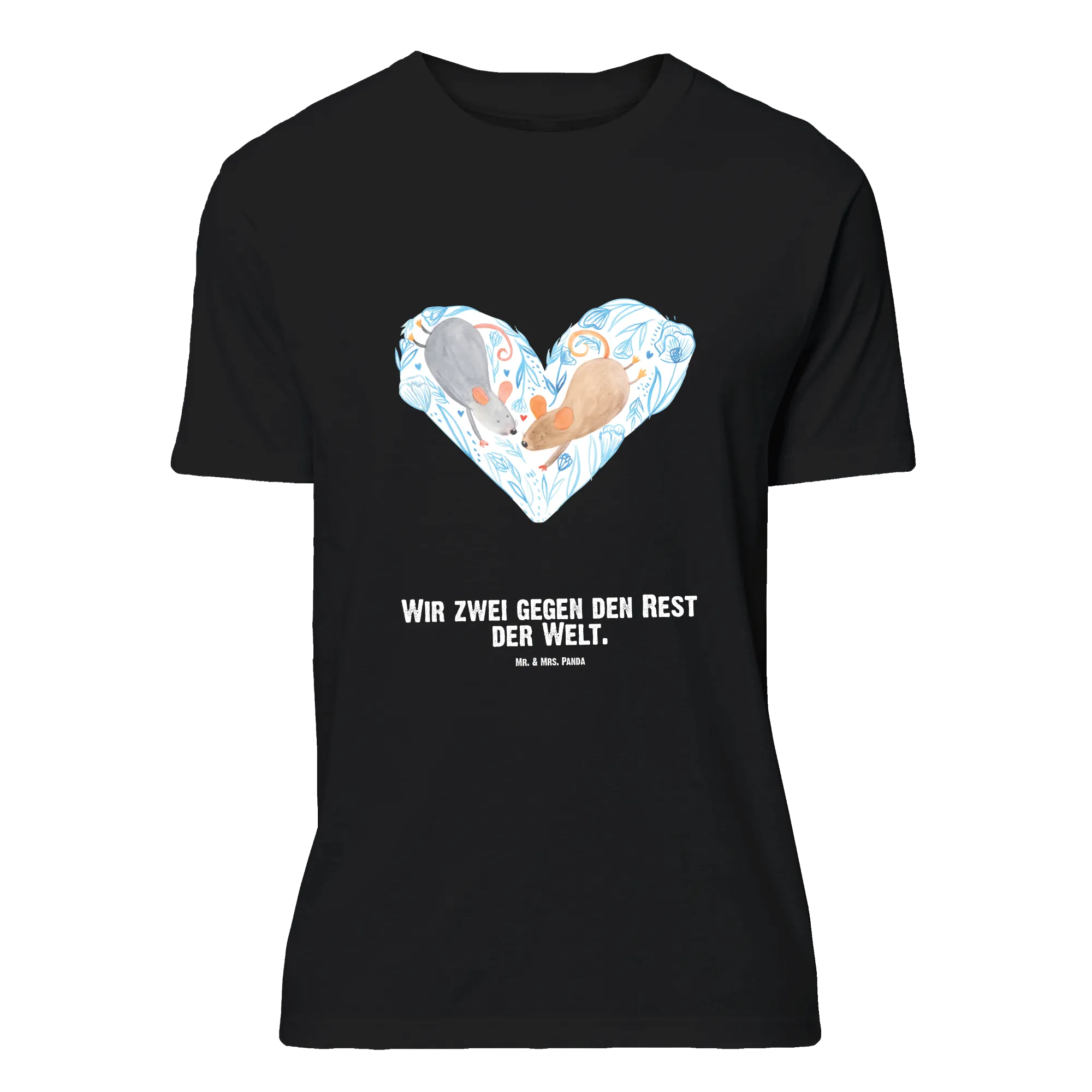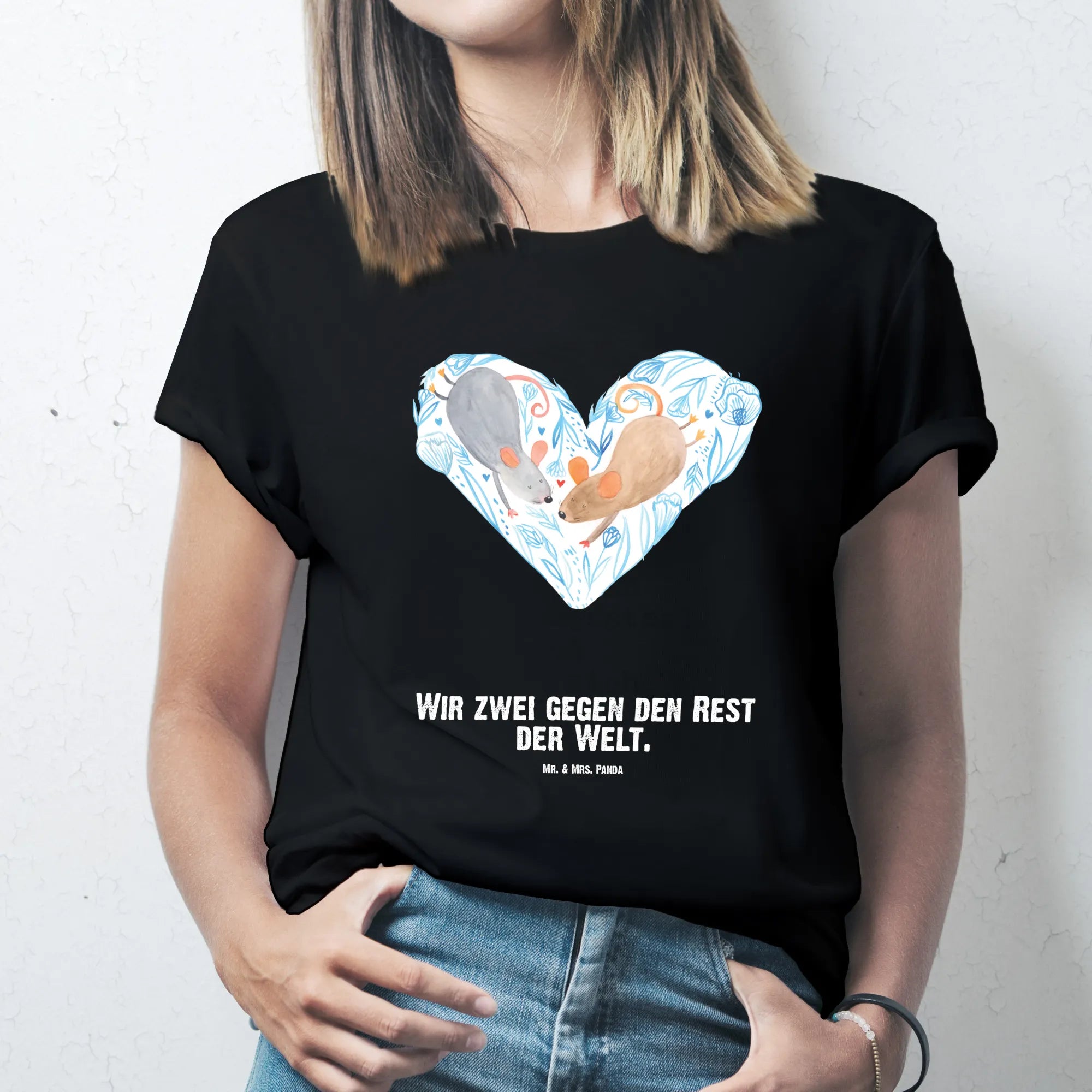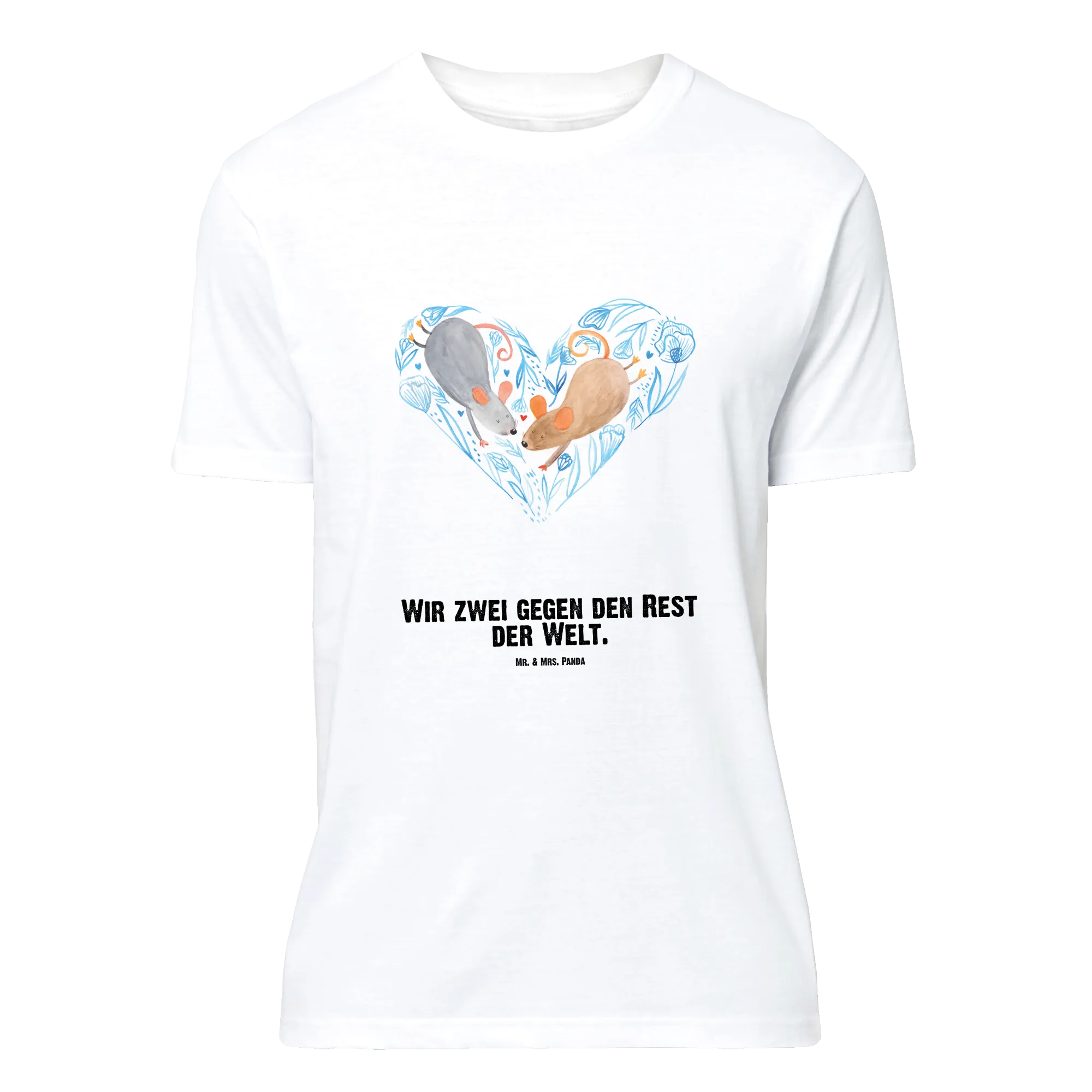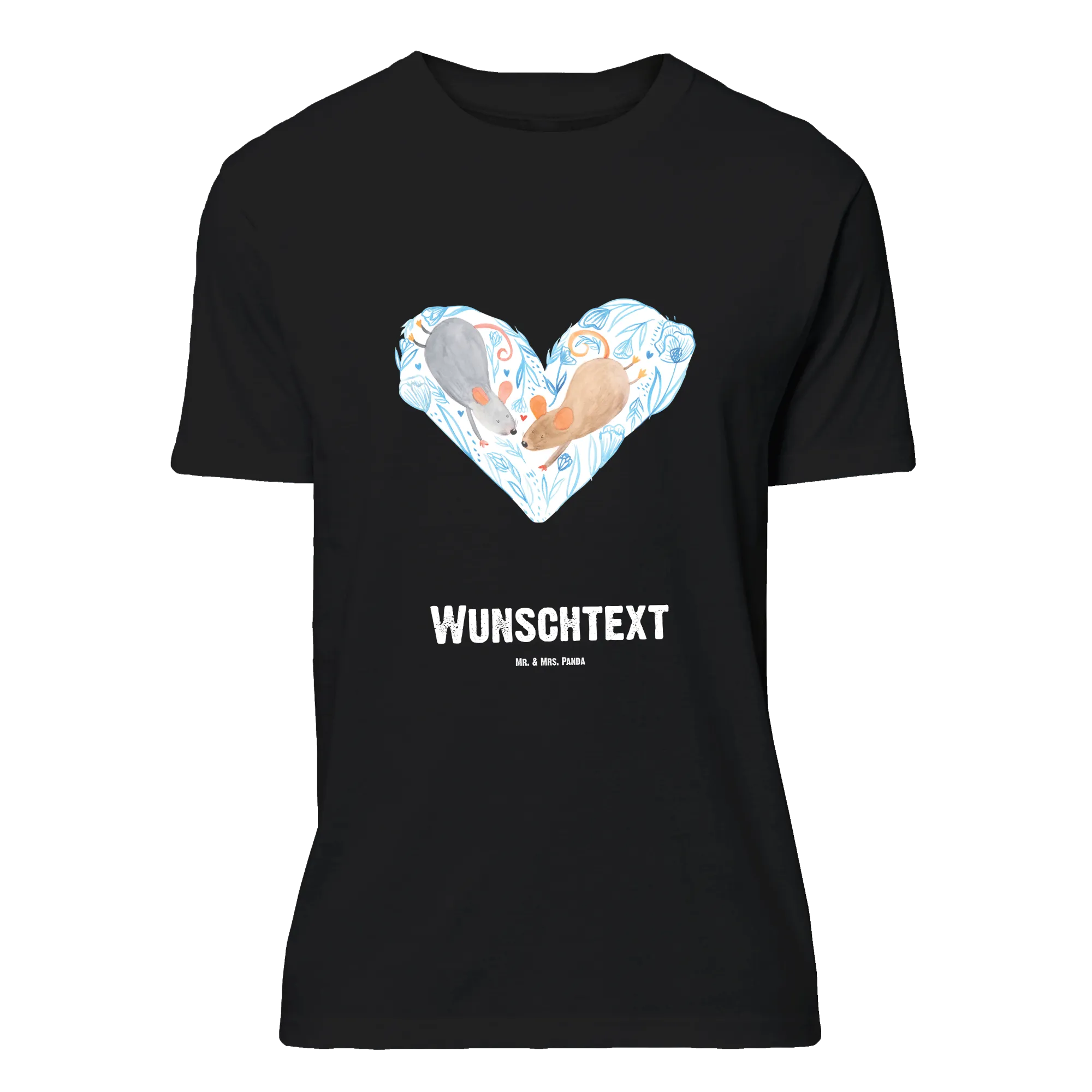 Das Größe L Personalisiertes T-Shirt mit dem zauberhaften Motiv "Mäuse Herz" aus der Kollektion Liebe von Mr. & Mrs. Panda ist das perfekte Geschenk für Paare, die ihre Liebe auf eine besondere Weise feiern möchten!