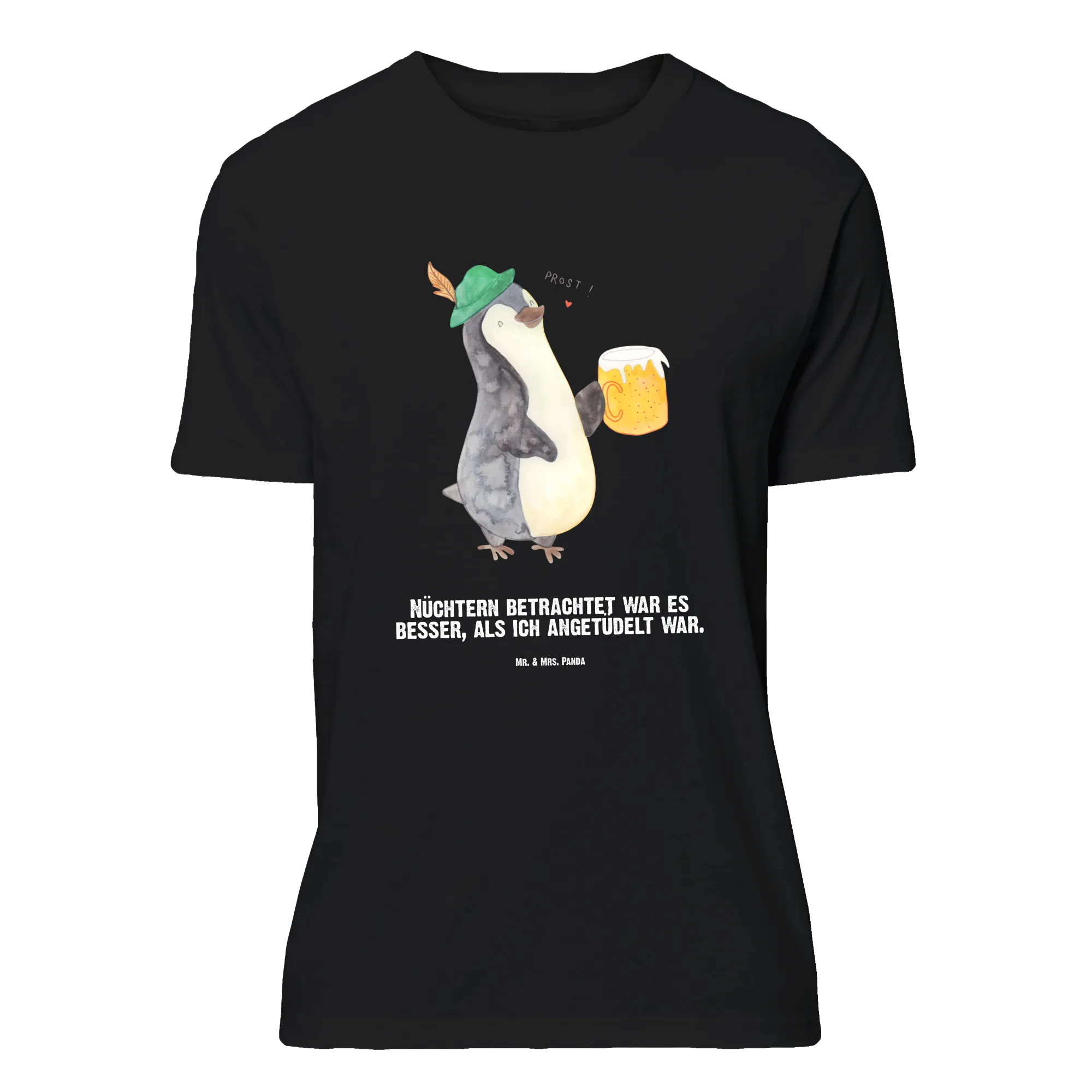 Mach Dich bereit für Party und gute Laune! Unser Größe L Personalisiertes T-Shirt „Pinguin Bier“ aus der Pinguin - Kollektion von Mr. & Mrs. Panda zeigt einen niedlichen Pinguin in bayerischer Tracht, der ein Maß Bier stemmt. Dazu trägt das Shirt den witzigen Spruch: „Nüchtern betrachtet war es besser, als ich angetüdelt war.“ – genau das Richtige für alle, die Humor und Gemütlichkeit lieben.