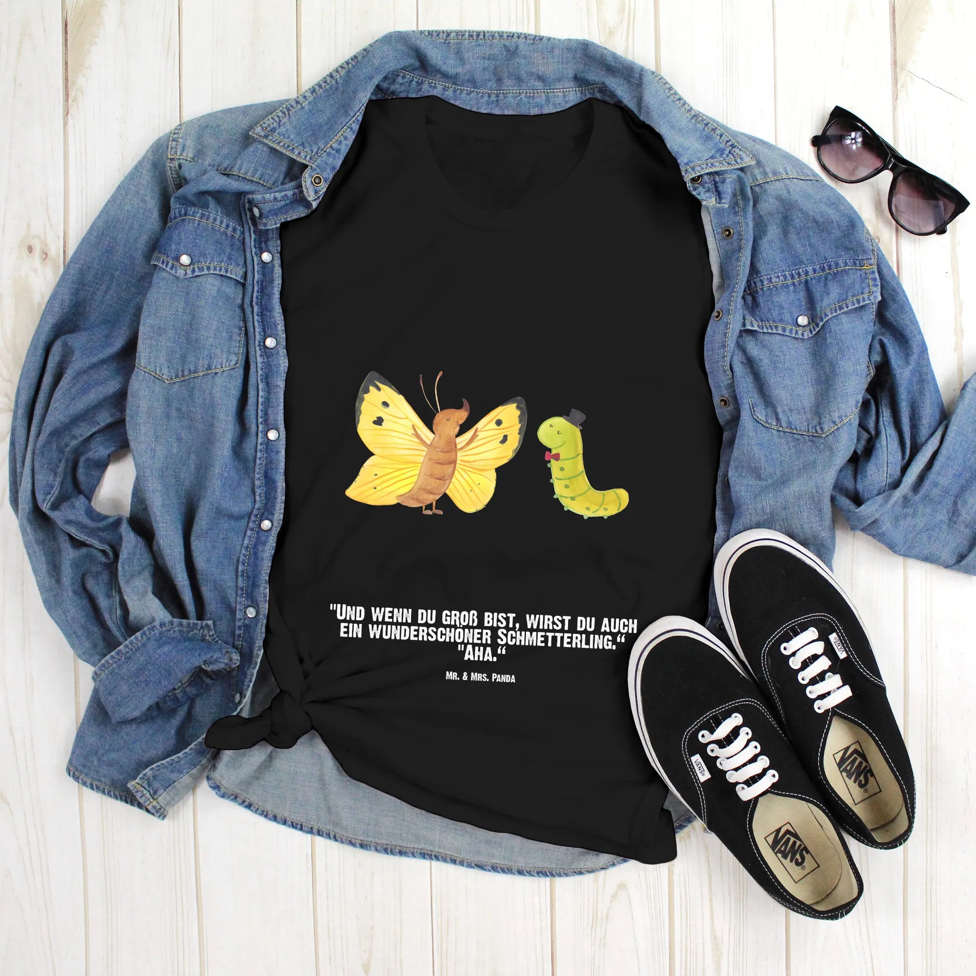 Entdecke das perfekte Geschenk mit unserem Größe L Personalisierten T-Shirt mit dem zauberhaften Motiv Raupe & Schmetterling aus der einzigartigen Small World Kollektion von Mr. & Mrs. Panda! Dieses T-Shirt ist mehr als nur ein Kleidungsstück; es ist ein Symbol für Wachstum, Transformation und das Erwachsenwerden.