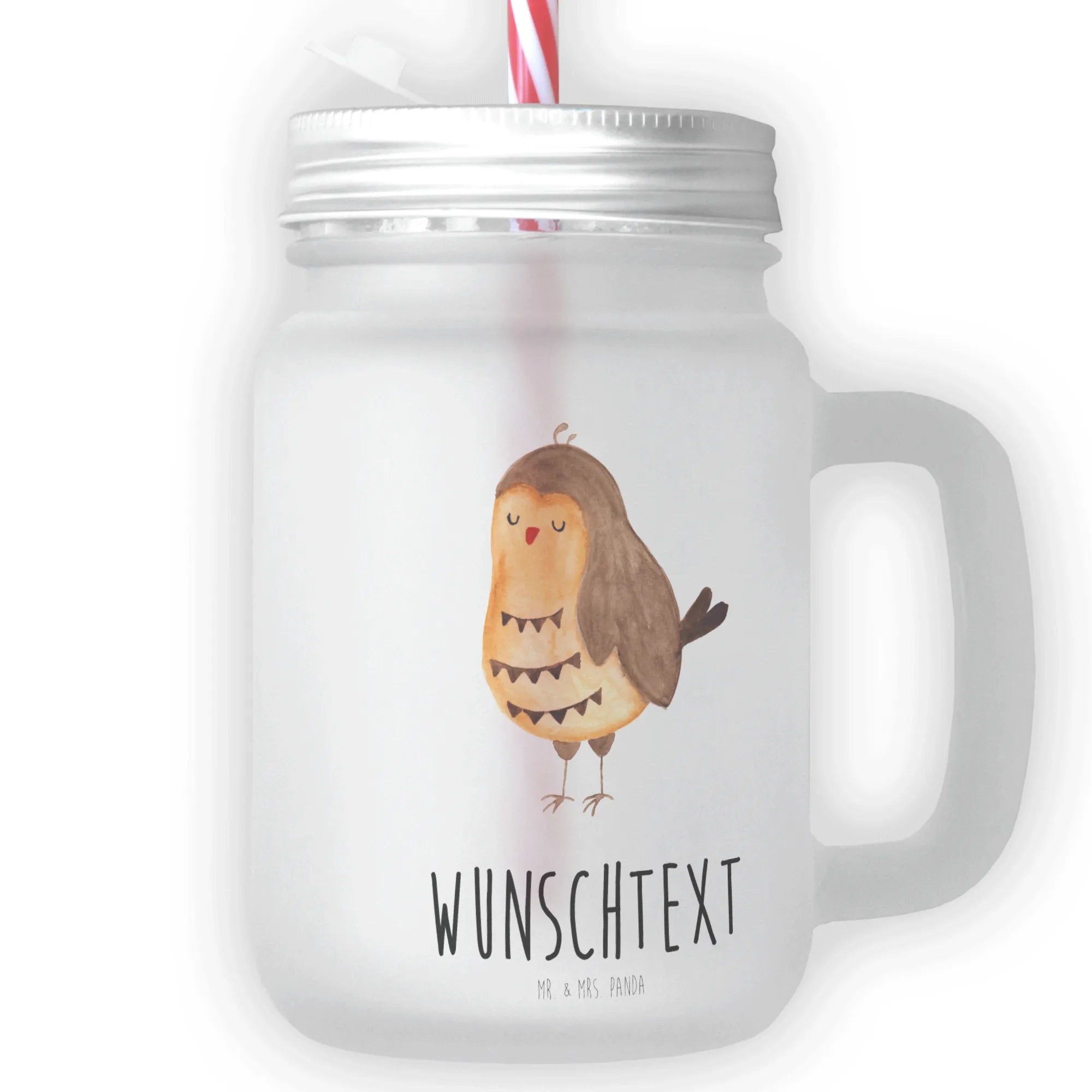 Personalisiertes Trinkglas Mason Jar Eule Zufrieden – Mr. & Mrs. Panda