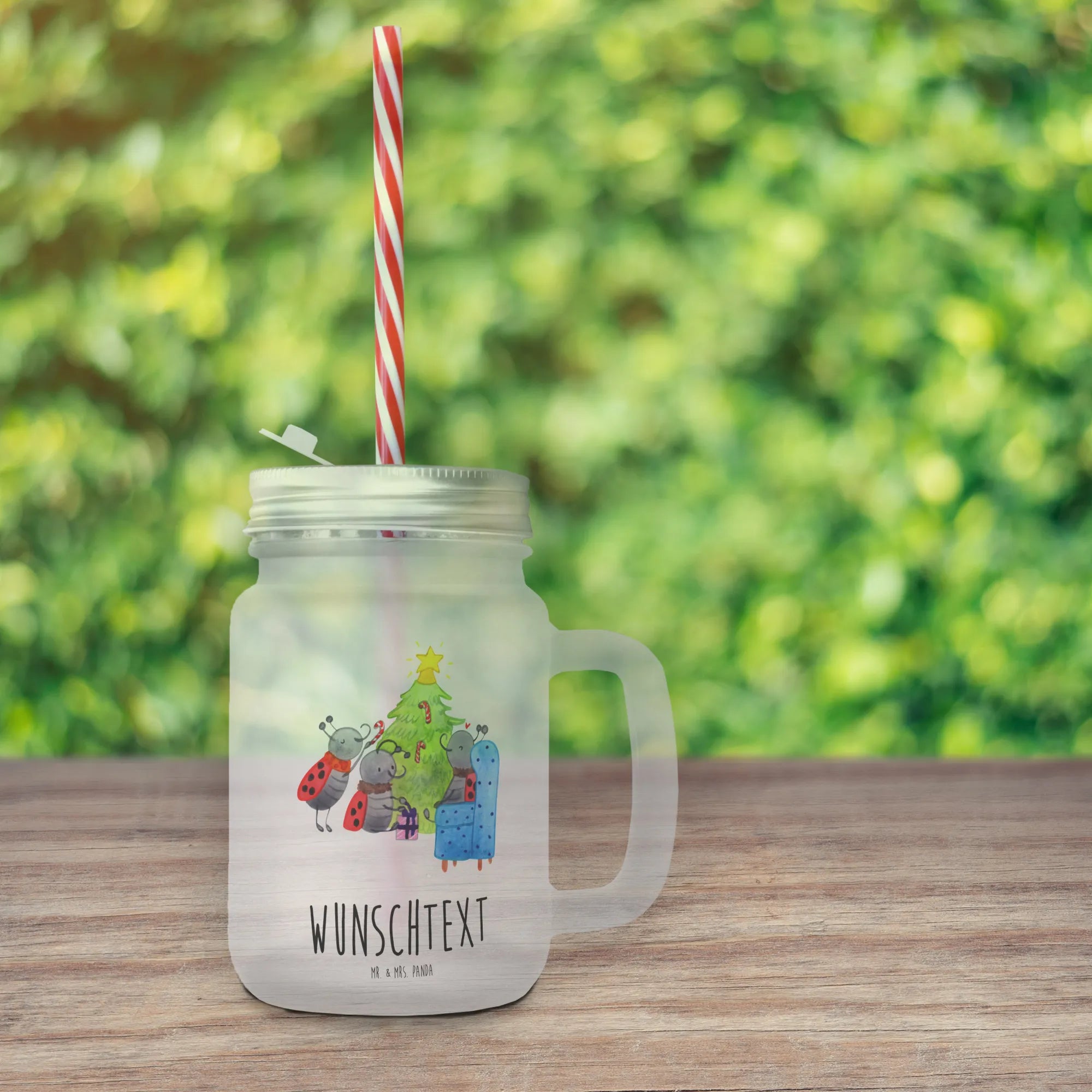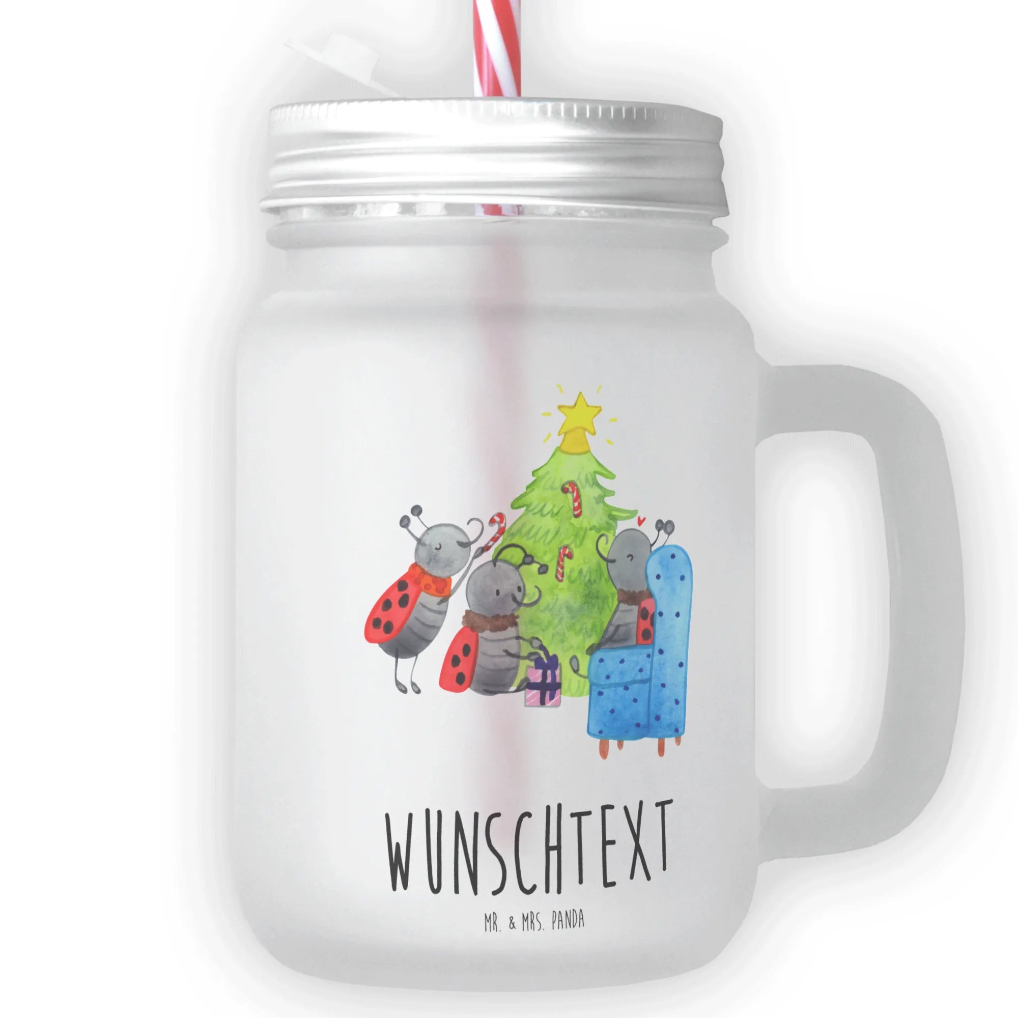 Das personalisierte Trinkglas Mason Jar Weihnachten Smörle von Mr. & Mrs. Panda ist der perfekte Begleiter für die festliche Jahreszeit. Ob du ein erfrischendes Getränk, einen festlichen Cocktail oder eine selbstgemachte Limonade genießen möchtest, dieses wunderschöne Glas hat alles zu bieten. Mit einer liebevoll gestalteten winterlichen Szene, die fröhliche Marienkäfer zeigt, die um einen Weihnachtsbaum dekorieren, zaubert dieses Glas sofort ein Lächeln ins Gesicht.