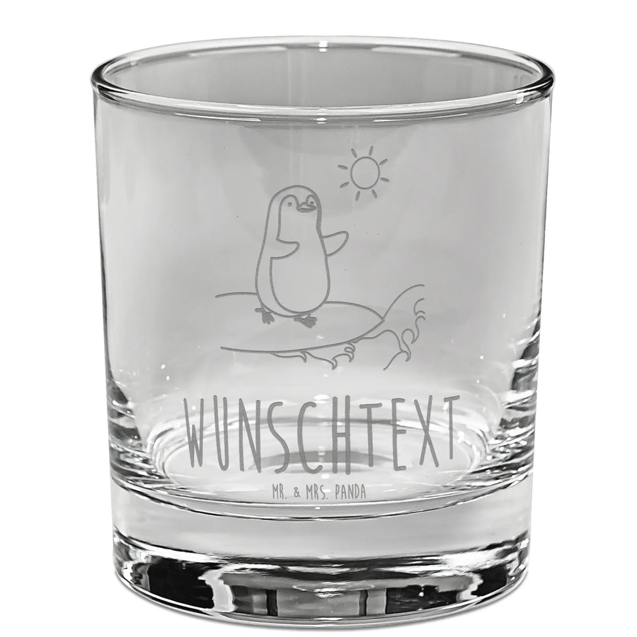 Das personalisierte Whiskey Glas mit dem süßen Pinguin Surfer Motiv von Mr. & Mrs. Panda ist das perfekte Geschenk für alle, die die Wellen des Lebens genießen möchten! Mit einer Höhe von 94 mm und einem Durchmesser von 83 mm ist dieses robuste Glas ideal, um deinen Lieblingswhiskey stilvoll zu präsentieren.
