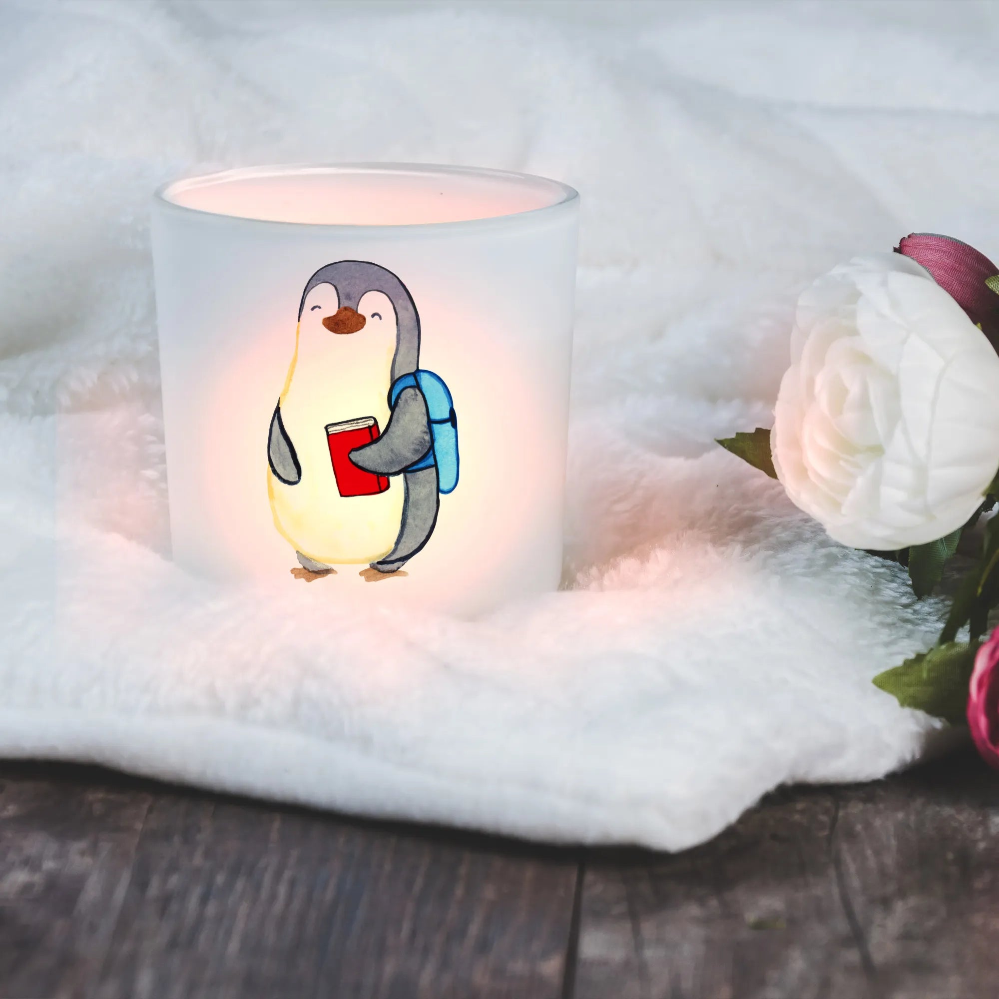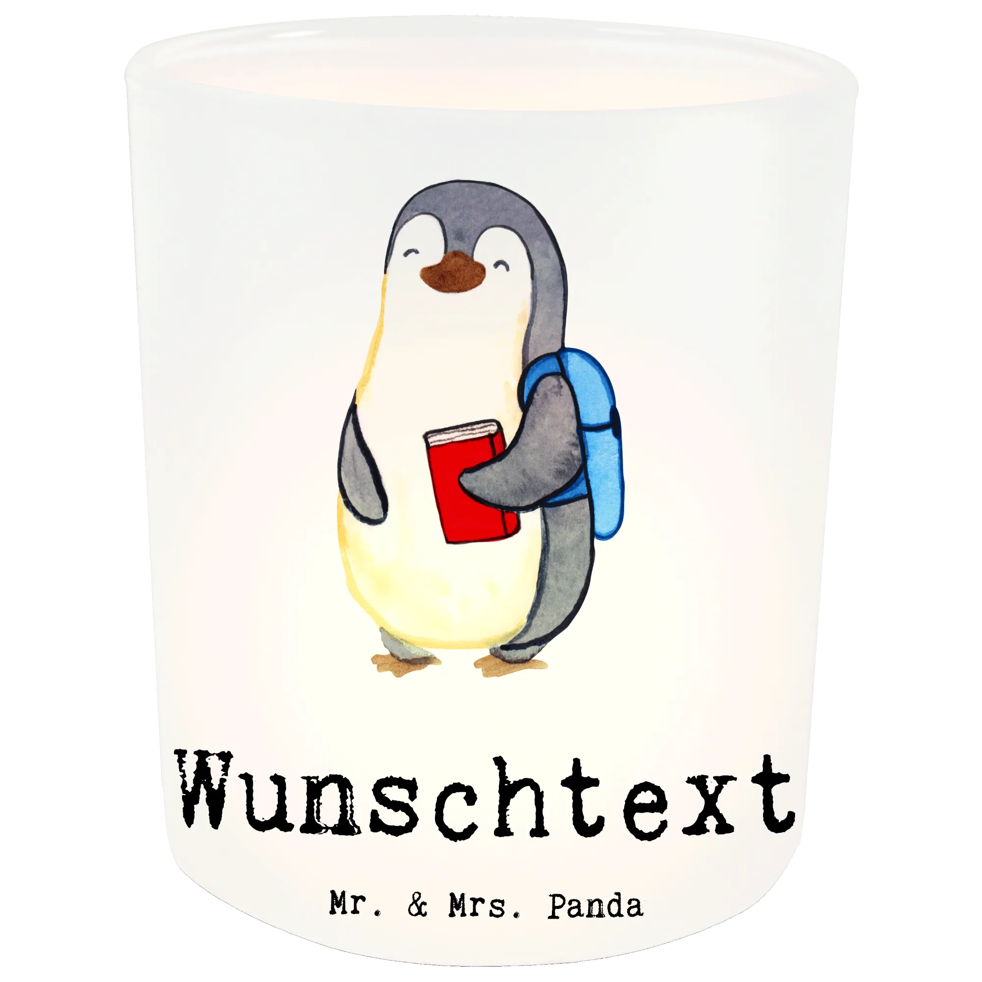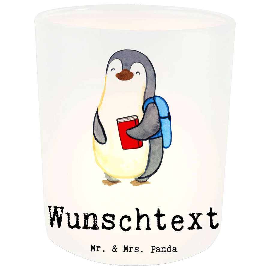 Der niedliche Pinguin mit einem Rucksack auf dem Rücken und einem Buch in der Hand ist ein liebevoll gestaltetes Motiv von Mr. & Mrs. Panda, hinter dem die Botschaft steht: "Bester Enkel der Welt". Dieses Windlicht kann personalisiert werden – ob mit einem Namen oder deinem Wunschtext, es wird zu einem einzigartigen Objekt voller Erinnerungen.