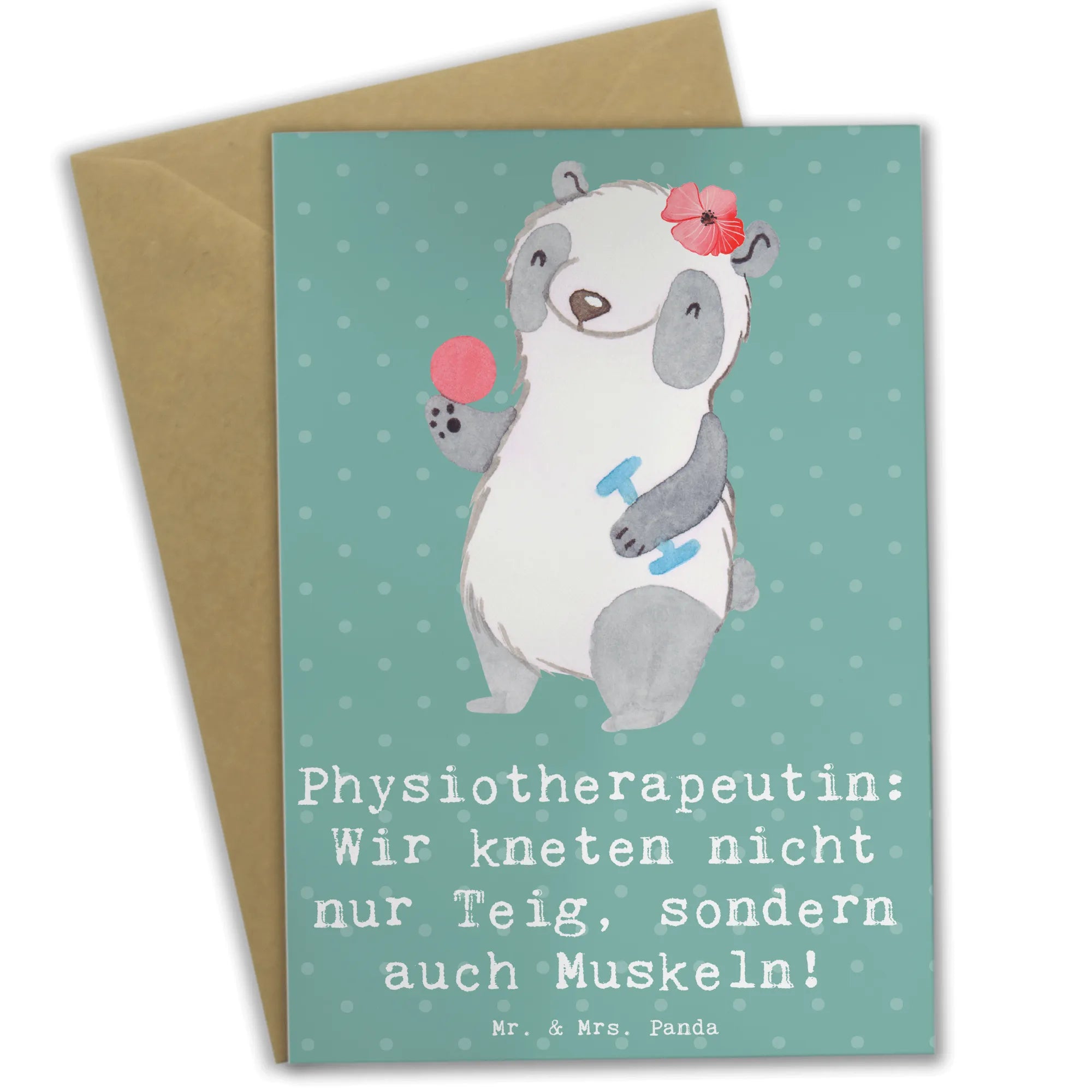 Die liebevolle Grußkarte mit dem Motiv "Physiotherapeutin: Wir kneten nicht nur Teig, sondern auch Muskeln!" von Mr. & Mrs. Panda ist das perfekte Geschenk für alle, die im Bereich der Physiotherapie tätig sind oder jemanden in diesem Beruf kennen. Ob zu einem Kollegen, Freund oder als kleine Aufmerksamkeit für die eigene Physiotherapeutin – diese Karte sorgt für ein Lächeln und ist eine humorvolle Hommage an diesen wichtigen Beruf.