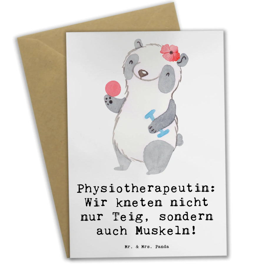 Die liebevolle Grußkarte mit dem Motiv "Physiotherapeutin: Wir kneten nicht nur Teig, sondern auch Muskeln!" von Mr. & Mrs. Panda ist das perfekte Geschenk für alle, die im Bereich der Physiotherapie tätig sind oder jemanden in diesem Beruf kennen. Ob zu einem Kollegen, Freund oder als kleine Aufmerksamkeit für die eigene Physiotherapeutin – diese Karte sorgt für ein Lächeln und ist eine humorvolle Hommage an diesen wichtigen Beruf.