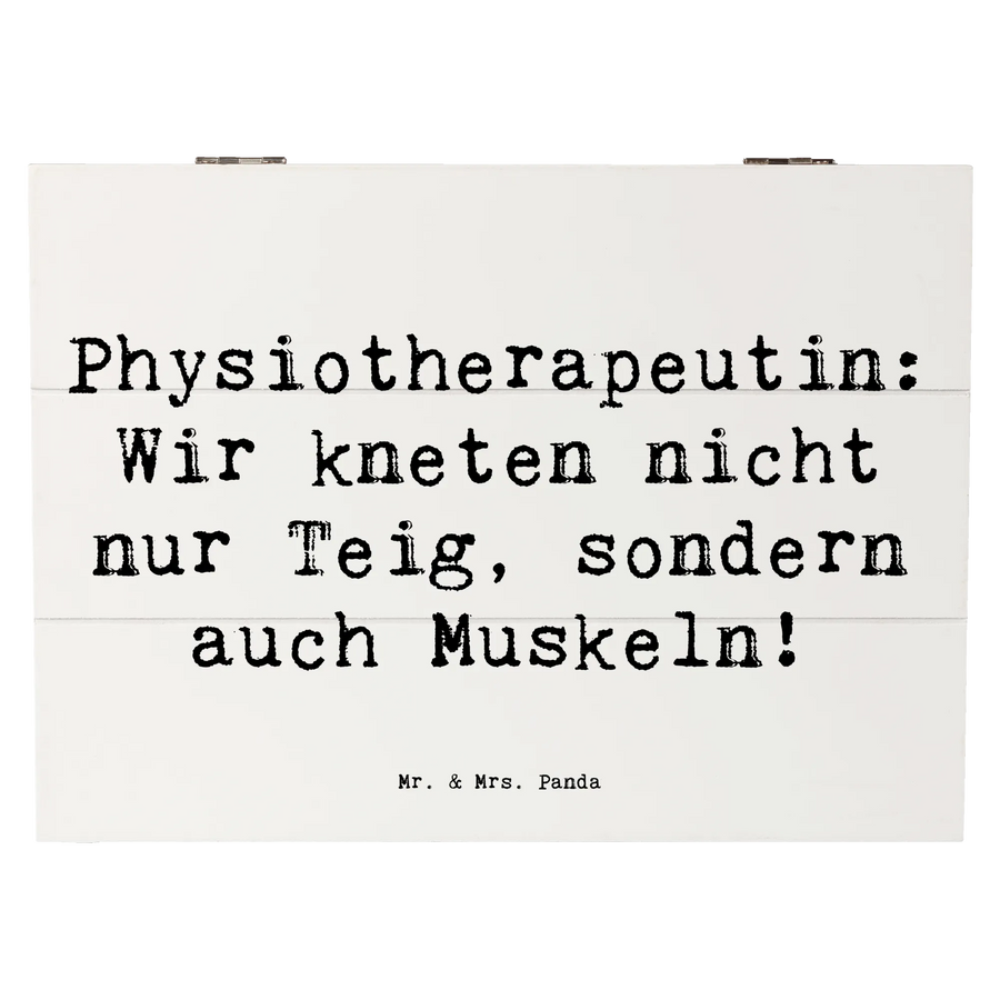 Entdecke die zauberhafte Holzkiste "Physiotherapeutin" von Mr. & Mrs. Panda! Diese wunderschöne Kiste ist nicht nur ein idealer Aufbewahrungsort für all deine wertvollen Schätze, sondern auch eine fantastische Geschenkidee für Physiotherapeuten und -therapeutinnen!