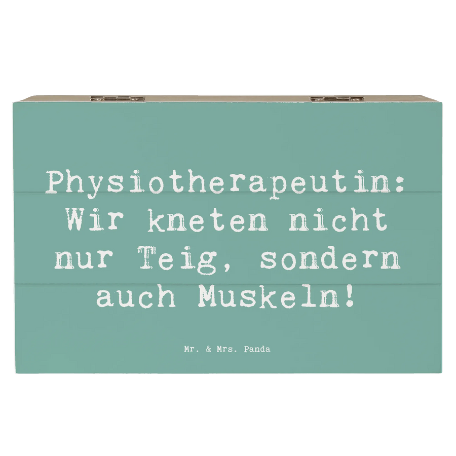 Mr. & Mrs. Panda Holzkiste "Physiotherapeutin" – eine liebevolle Aufbewahrungsbox Holz aus unserer Berufe-Kollektion. Mit dem fröhlichen Spruch „Physiotherapeutin: Wir kneten nicht nur Teig, sondern auch Muskeln!“ ist diese Holzbox das perfekte Geschenk für Physiotherapeutinnen, Kollegen, Patientinnen oder als hübsche Dekoration für die Praxis.