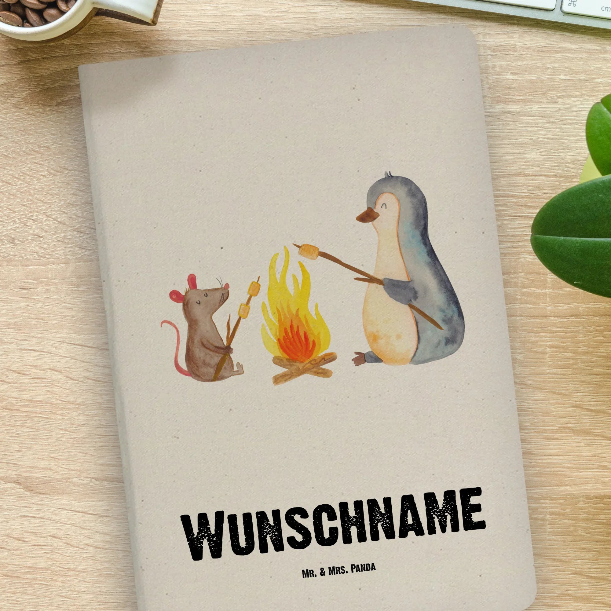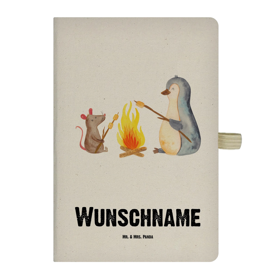 DIN A4 Personalisiertes Notizbuch Pinguin Lagerfeuer