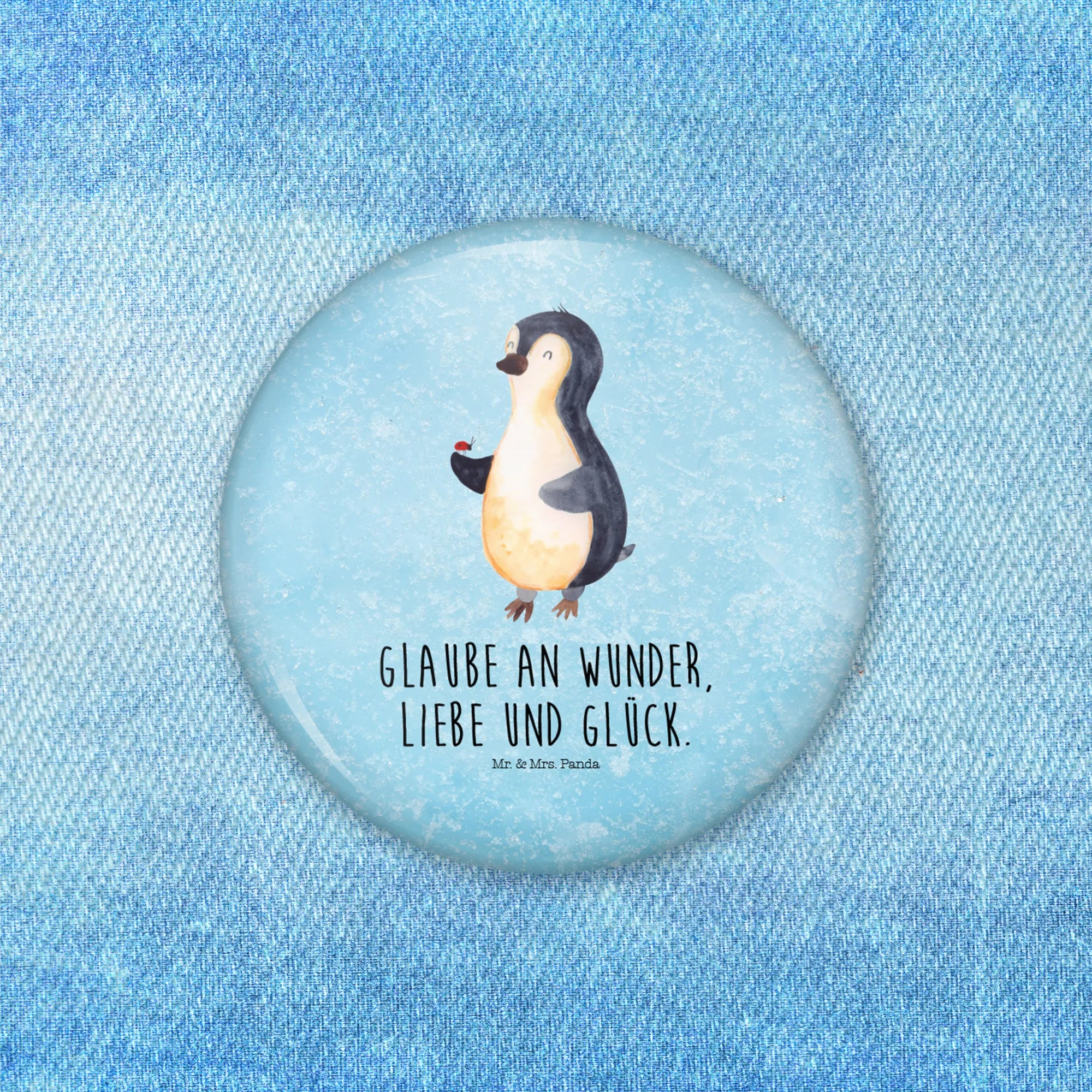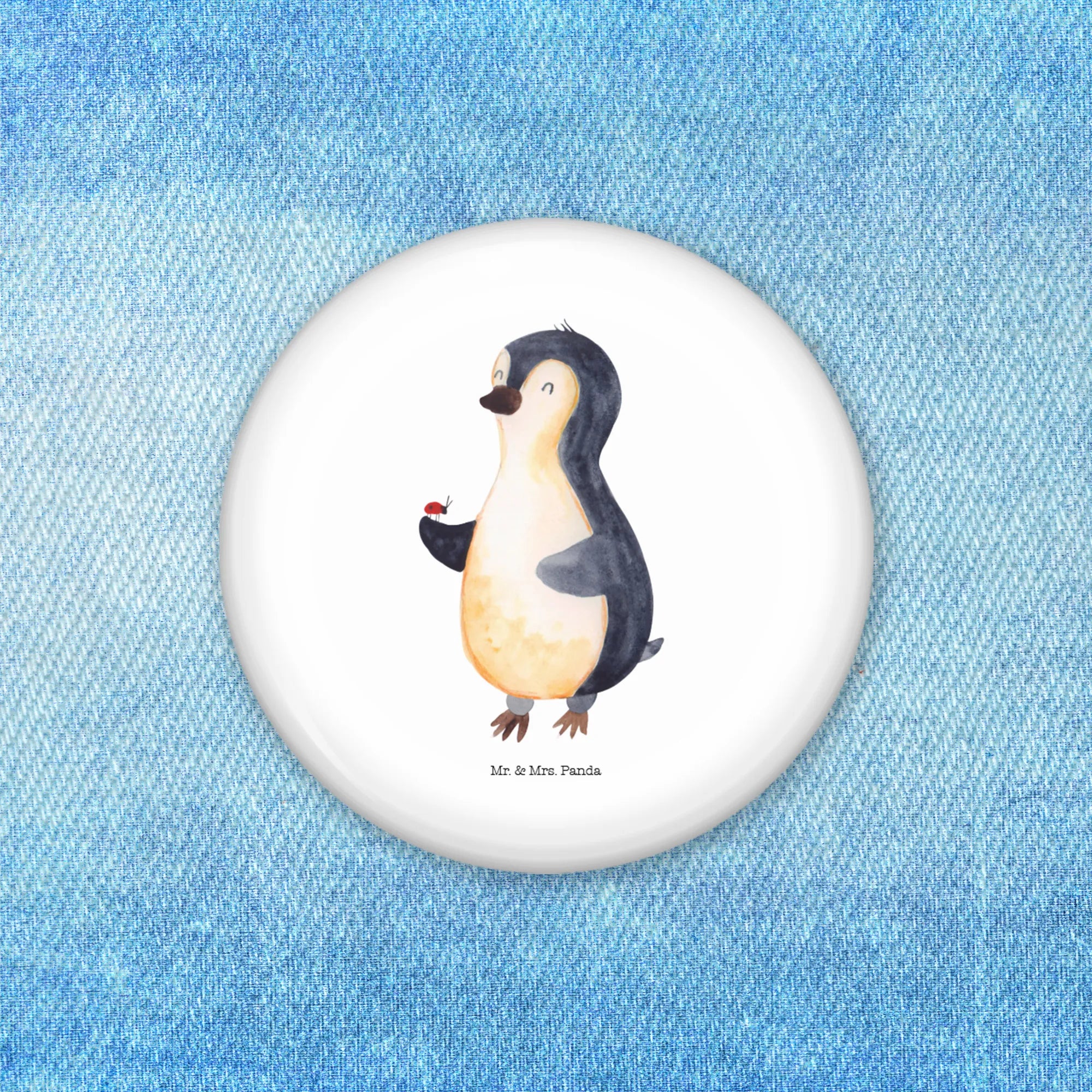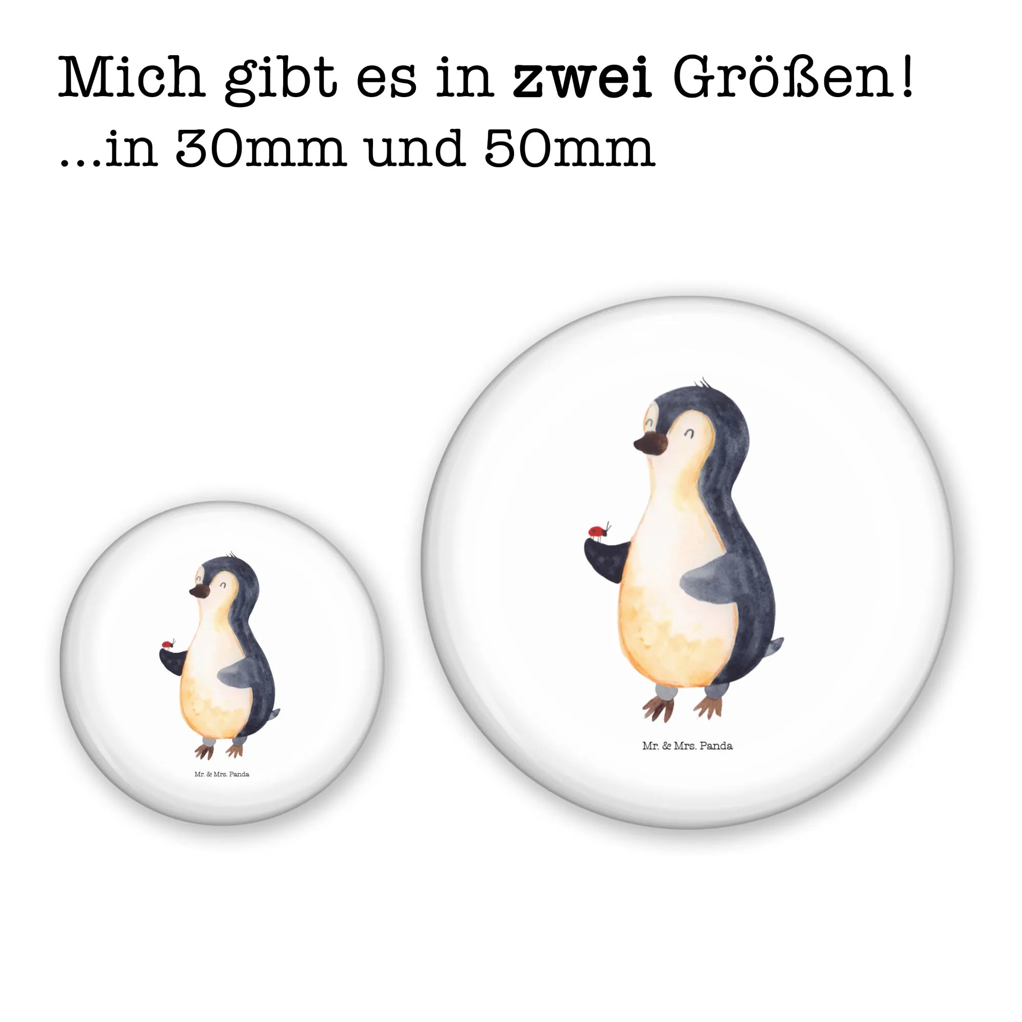 Der 50mm Button mit dem entzückenden Motiv Pinguin Marienkäfer von Mr. & Mrs. Panda ist das perfekte Geschenk für Freunde und Familie, die Freude, Liebe und Lebensfreude schätzen. Mit einem Durchmesser von 50 Millimetern passt dieser Button wunderbar auf jedes Kleidungsstück oder Accessoire und bringt gleichzeitig ein Lächeln ins Gesicht. Die Kombination aus einem süßen Pinguin und einem fröhlichen Marienkäfer symbolisiert nicht nur Glück, sondern auch das Glauben an Wunder.