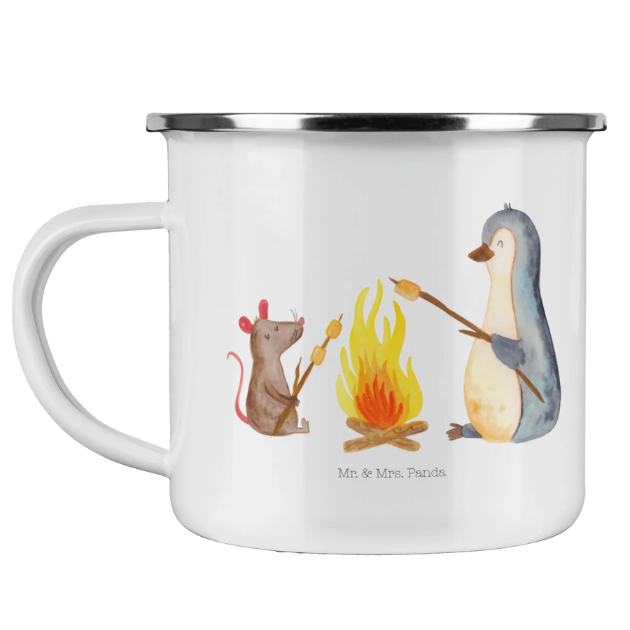 Die Camping Emaille Tasse mit dem süßen Pinguin Lagerfeuer Motiv von Mr. & Mrs. Panda ist das perfekte Geschenk für Naturliebhaber und Abenteuerlustige! Sie ist nicht nur ein praktischer Begleiter für all deine Campingausflüge, sondern auch ein ganz persönliches Accessoire, das Erinnerungen an gemeinsame Lagerfeuer-Abende wachruft.