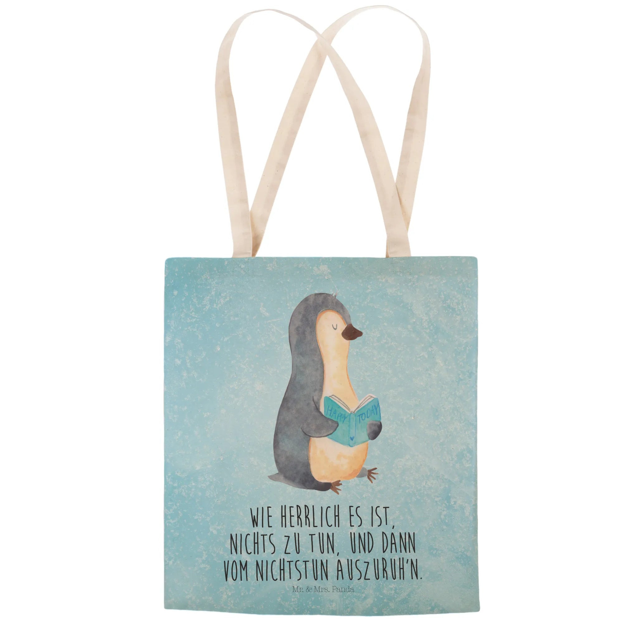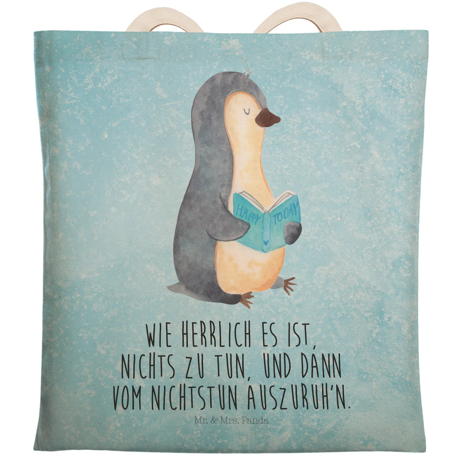 Entdecke die charmante Einkaufs- oder Tragetasche mit dem süßen Pinguin-Motiv aus der exklusiven Pinguin-Kollektion von Mr. & Mrs. Panda! Diese Tasche ist nicht nur ein wahrer Blickfang, sondern auch ein praktisches Accessoire für jeden Buchliebhaber und Relax-Fan.