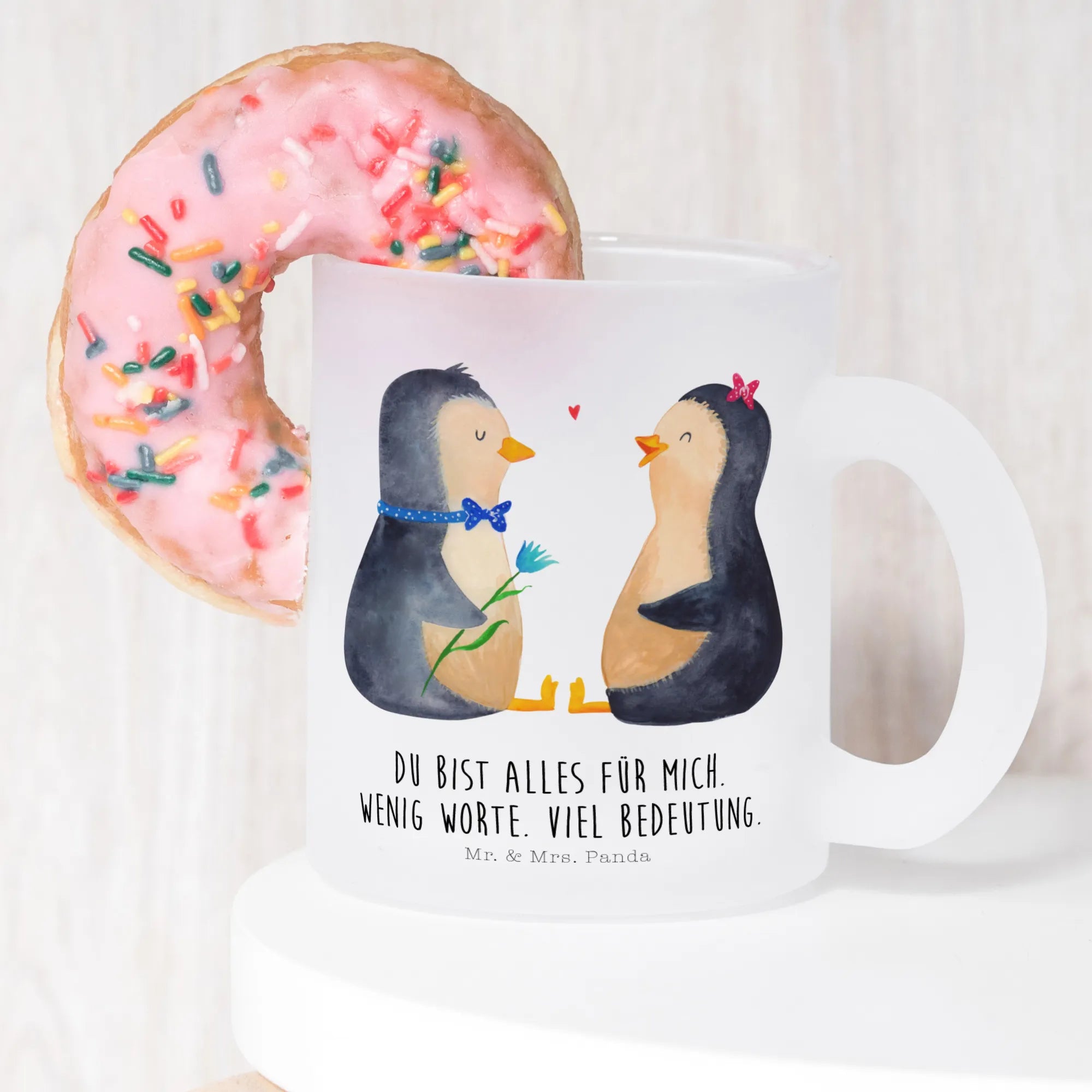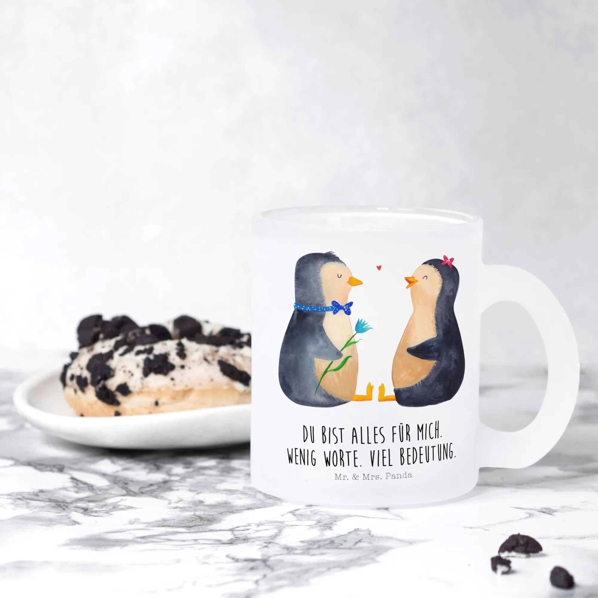 Die Teetasse aus der Pinguin-Kollektion von Mr. & Mrs. Panda ist das perfekte Geschenk für alle Verliebten und Pinguin-Liebhaber. Diese edle und einzigartige Teetasse ist nicht nur ein schlichtes Geschirrstück, sondern ein wahres Liebesbeweis. Mit einem wunderschönen Motiv von einem Pinguin Pärchen und dem liebevollen Spruch "Du bist alles für mich. Wenig Worte. Viel Bedeutung." zieht sie alle Blicke auf sich und bringt jedes Herz zum Schmelzen. Die Pinguine, die sich liebevoll anblicken, verkörpern die große Liebe und sind ideal für besondere Anlässe wie Verlobungen, Jahrestage oder Hochzeiten.