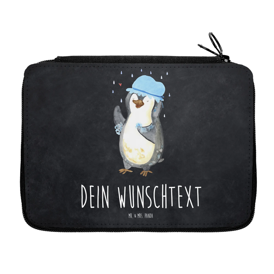 Personalisierte Federmappe Pinguin duscht - Kreidetafel