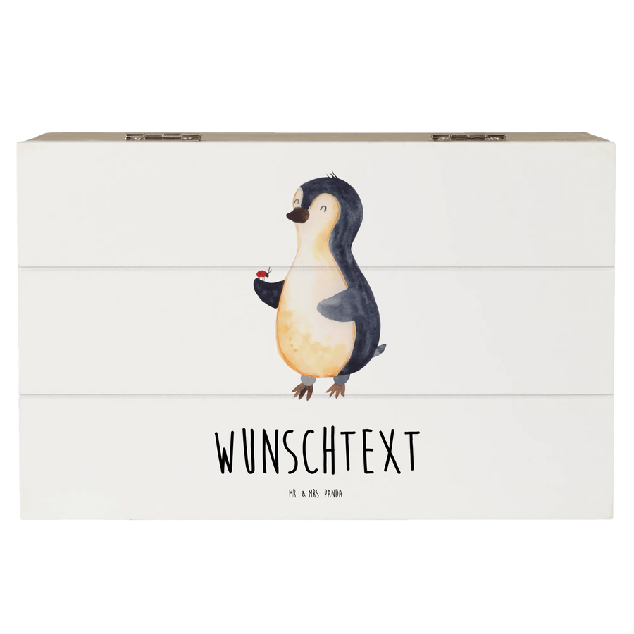 Entdecke die wundervolle personalisierte Holzkiste mit dem bezaubernden Motiv des Pinguins und Marienkäfers von Mr. & Mrs. Panda! Diese besondere Kiste ist nicht nur ein echter Blickfang, sondern sie bietet auch einen perfekten Platz für all deine kostbaren Erinnerungen und Schätze.