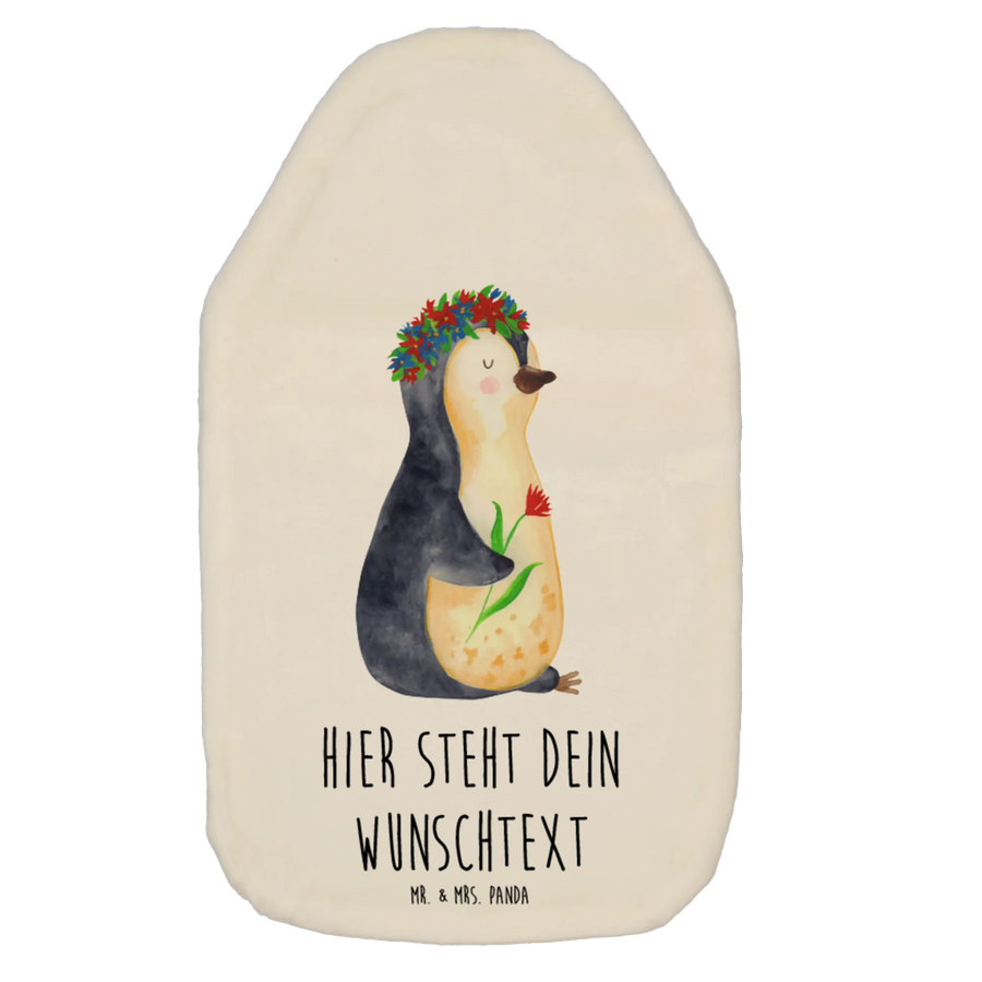 Lass die Herzen für das großartige Leben schlagen - mit der personalisierten Pinguin Blumenkranz Wärmflasche von Mr. & Mrs. Panda!