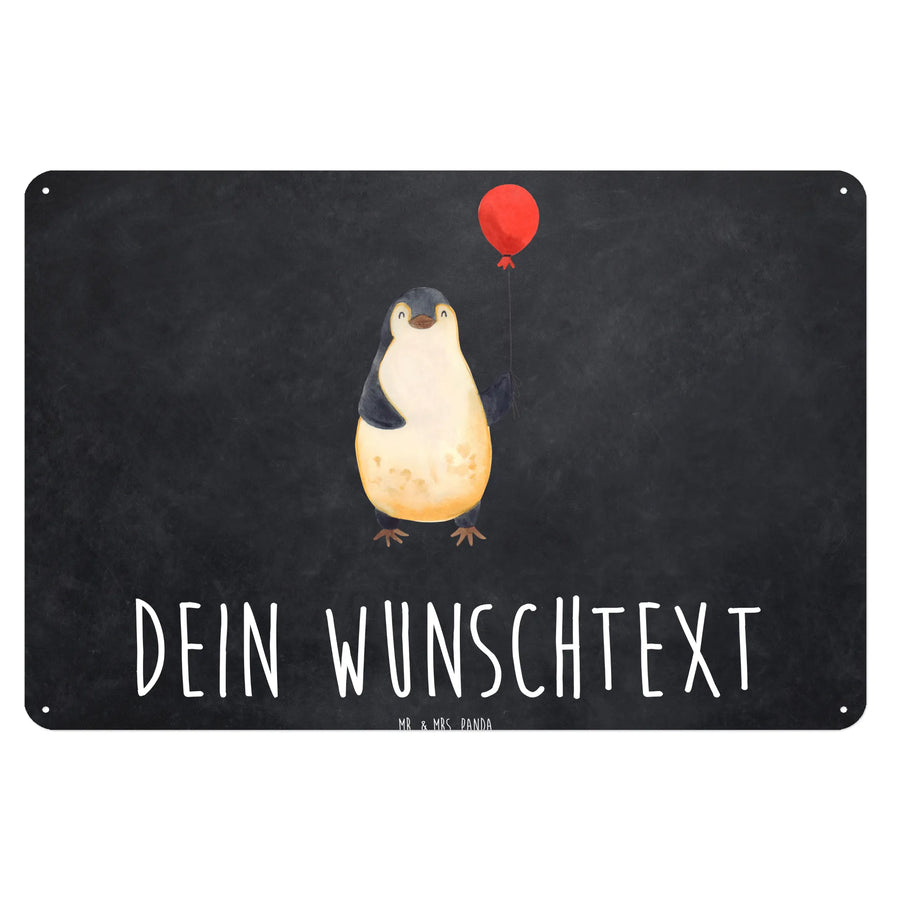 Entdecke unser wunderschönes und edles personalisiertes Blechschild mit dem süßen Motiv des Pinguins, der einen Luftballon in der Hand hält. Dieses besondere Schild aus der Pinguin-Kollektion von Mr. & Mrs. Panda verbreitet Lebensfreude und positive Energie und ist somit der perfekte Begleiter für dein Zuhause!