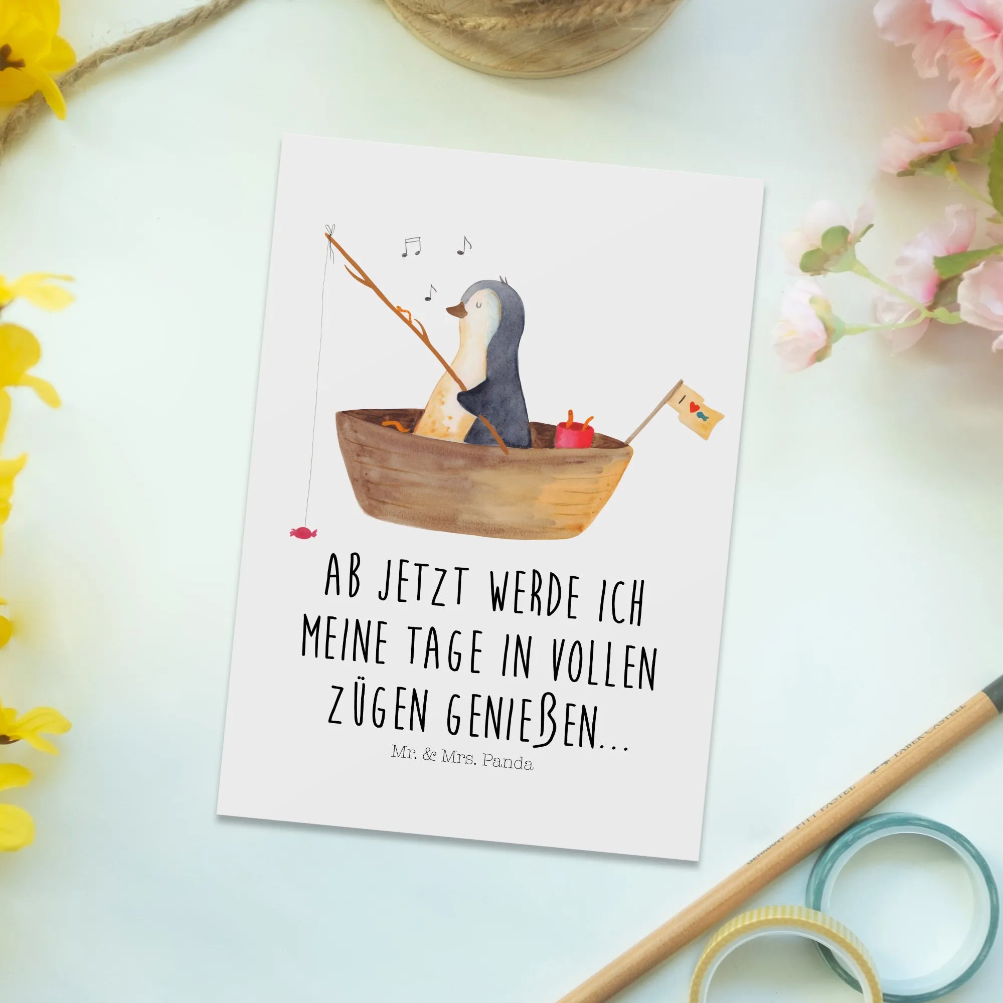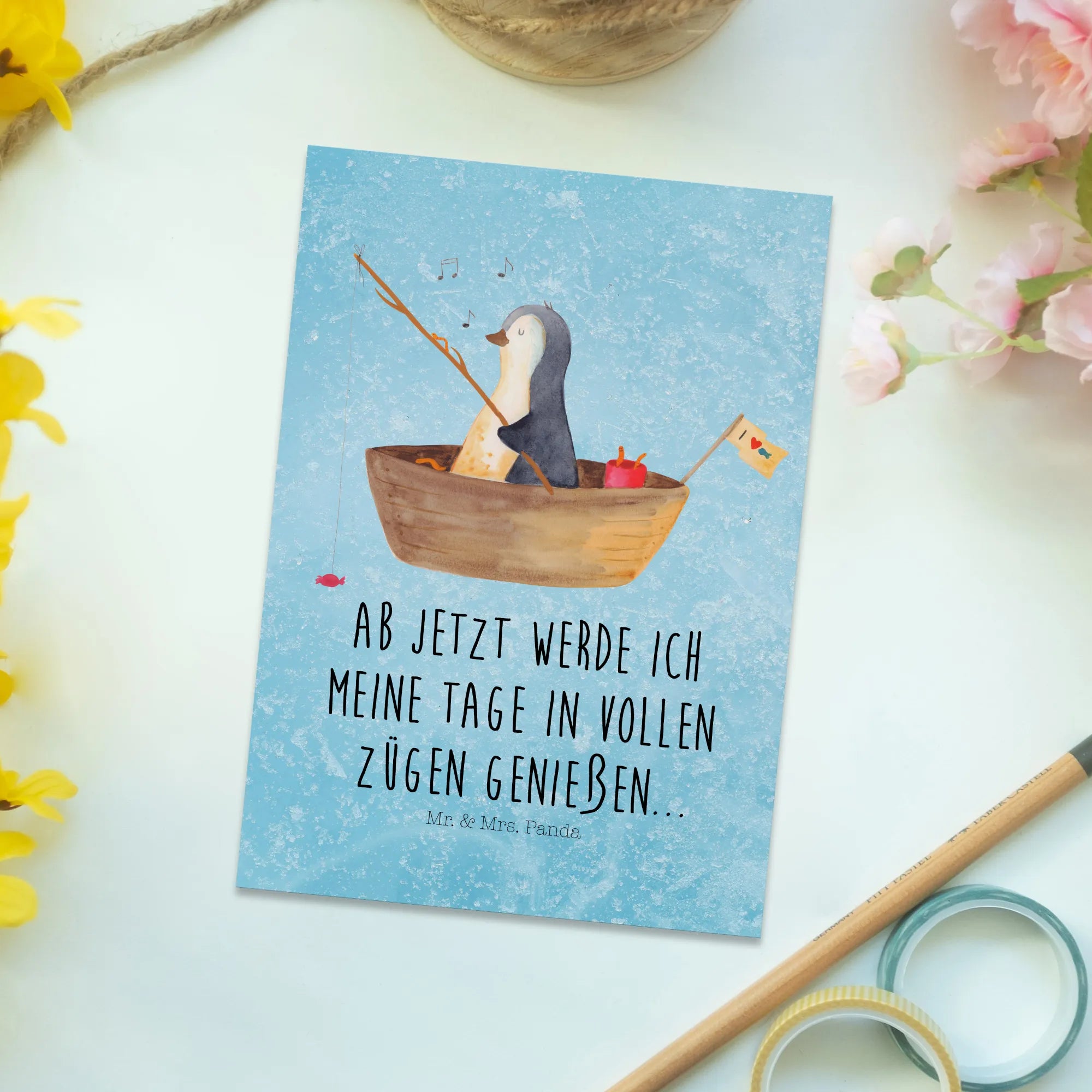 Postkarte Pinguin Angelboot – Mr. & Mrs. Panda