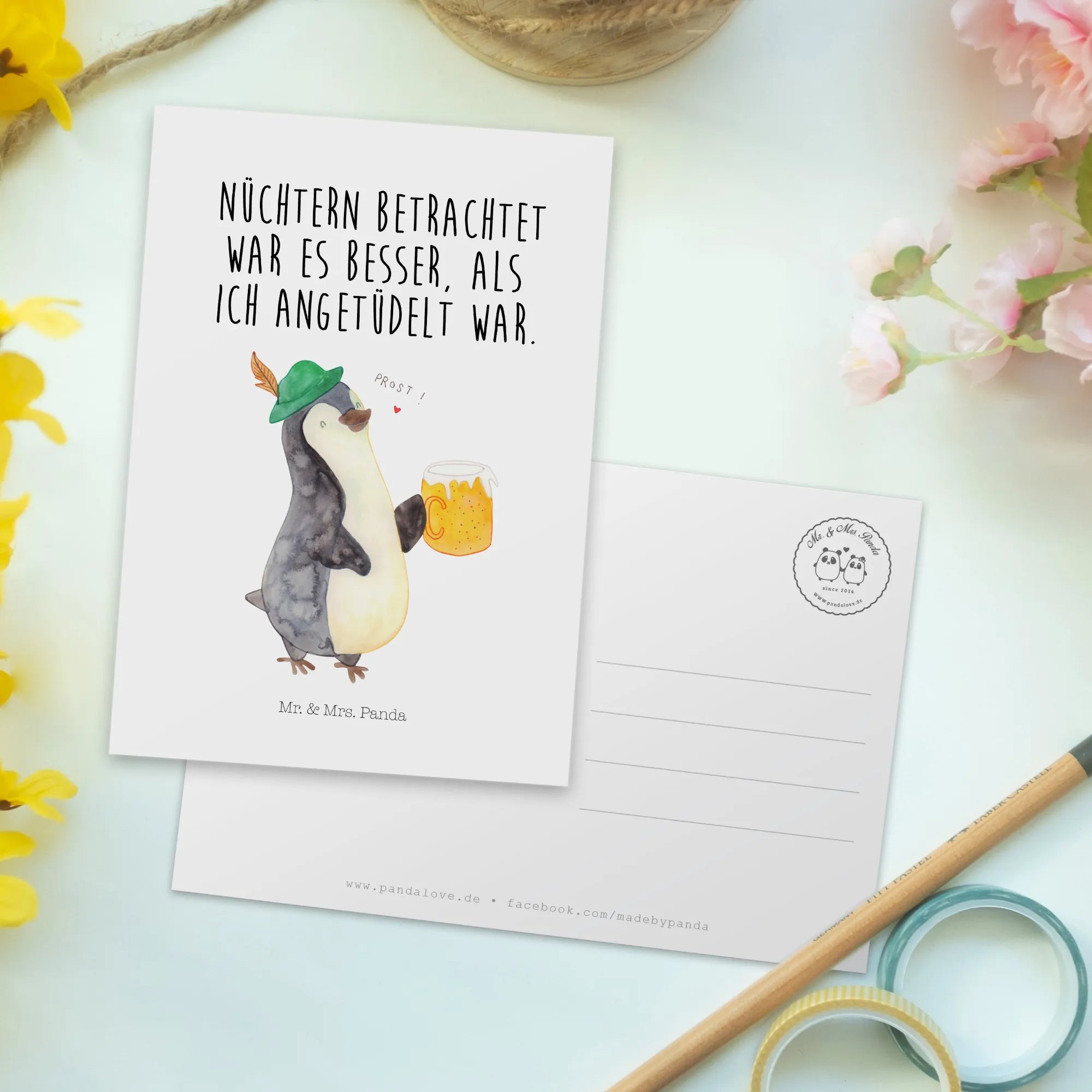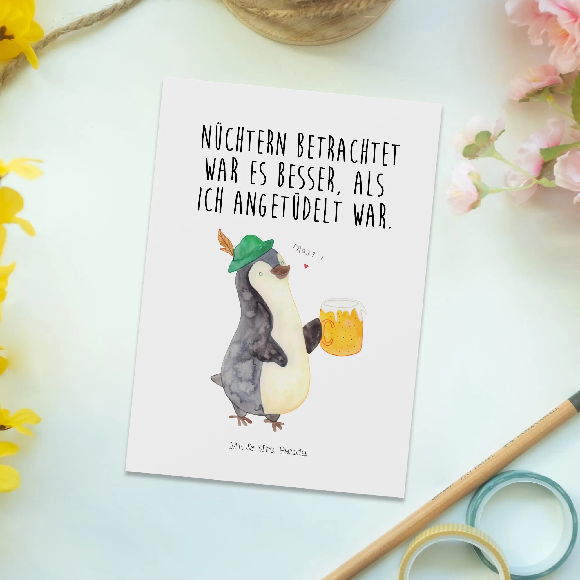 Hol dir gute Laune ins Postfach! Unsere Postkarte "Pinguin Bier" aus der Pinguin - Kollektion von Mr. & Mrs. Panda verbindet bayrisches Lebensgefühl mit niedlichem Charme. Der freche Pinguin in Tracht stemmt ein Maß Bier und sorgt sofort für Stimmung. Ideal als Oktoberfest Karte, Einladungskarte oder als witzige Geburtstagskarte Pinguin 🎉🍺