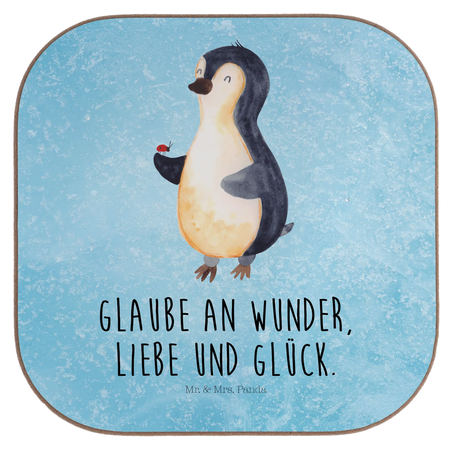 Der Untersetzer Pinguin Marienkäfer von Mr. & Mrs. Panda ist das perfekte Geschenk für alle, die das Besondere lieben! Mit seinem entzückenden Design eines Pinguins, der einen fröhlichen Marienkäfer auf seiner Flosse hält, bringt dieser quadratische Untersetzer frischen Wind in dein Zuhause.