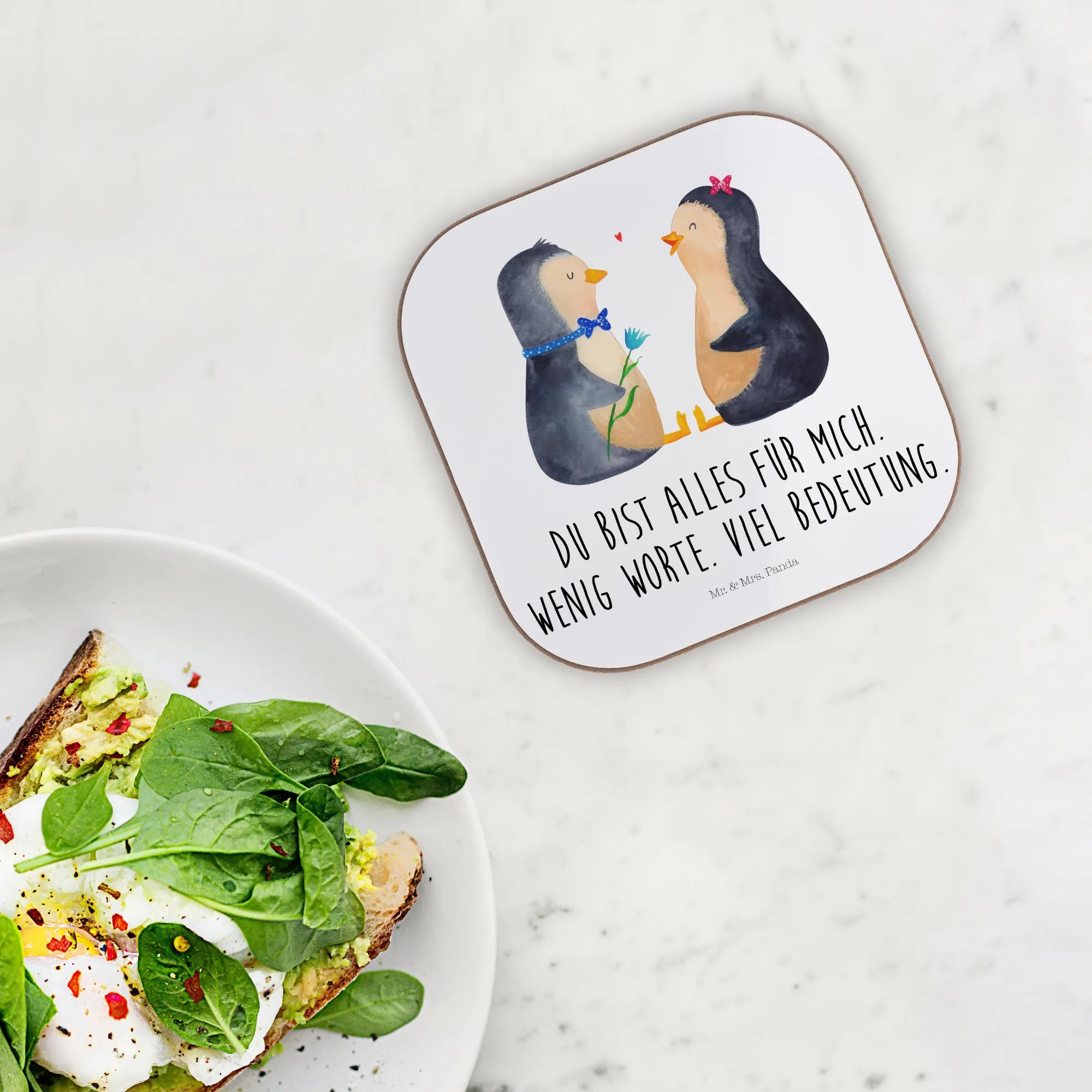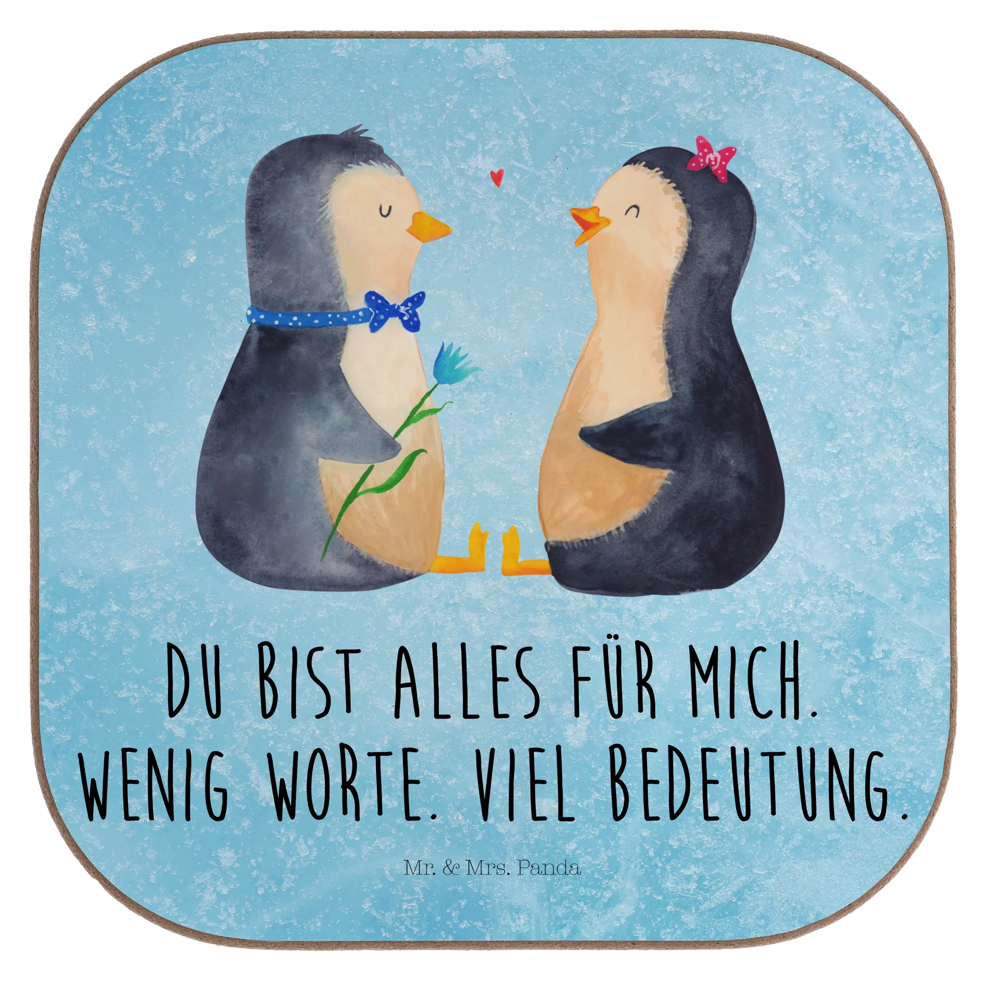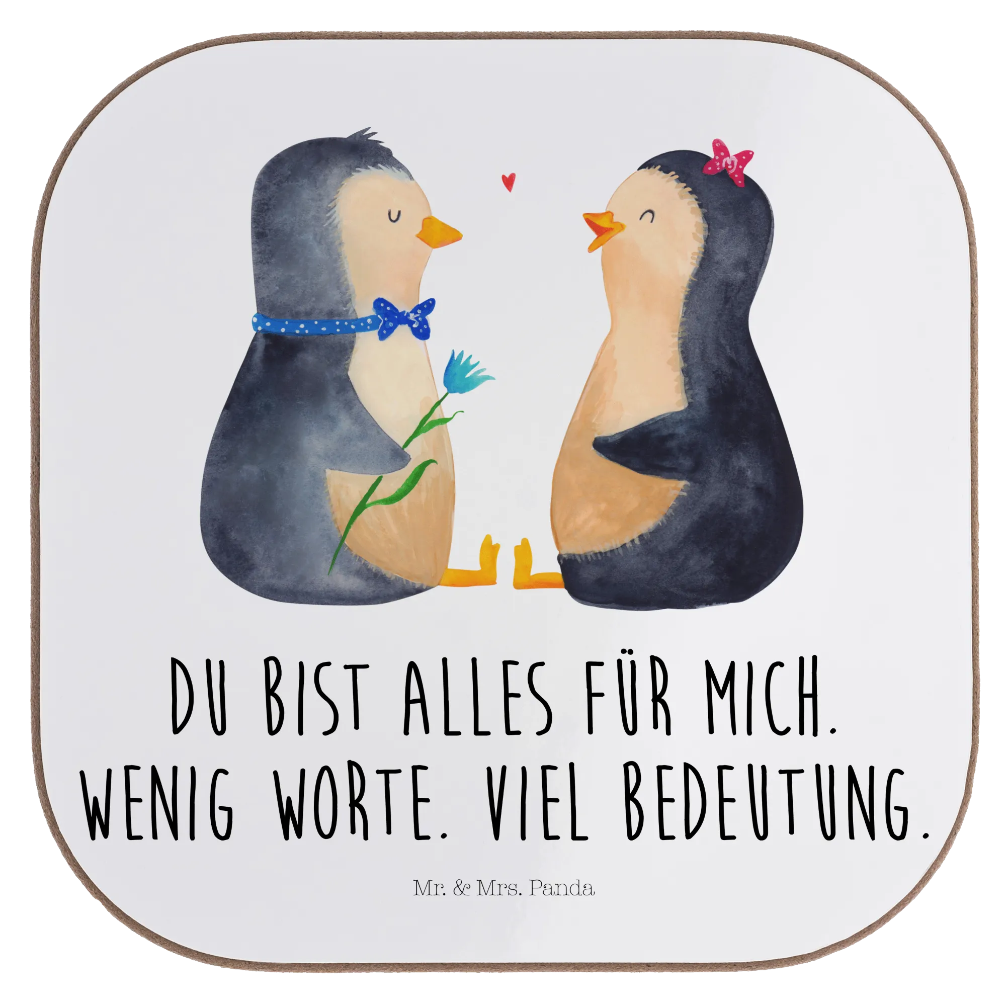 Der wunderschöne Untersetzer "Pinguin Pärchen" von Mr. & Mrs. Panda ist das ideale Geschenk für all jene, die die Liebe feiern möchten! Ob als Hochzeitsgeschenk, zur Verlobung oder zum Jahrestag – die süßen Pinguine, die sich liebevoll anschauen, stehen für Zuneigung und Lebensfreude.