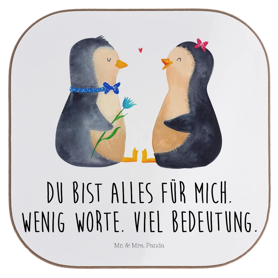 Dieser zauberhafte Untersetzer zeigt zwei liebevoll handgezeichnete Pinguine, die sich voller Zärtlichkeit anschauen. Das Motiv aus der Pinguin - Kollektion ist perfekt für alle, die kleine Liebesbotschaften groß schreiben: mit dem Spruch „Du bist alles für mich. Wenig Worte. Viel Bedeutung.“ wird der Untersetzer zum emotionalen Liebesgeschenk für Verlobung, Jahrestag oder Hochzeit.