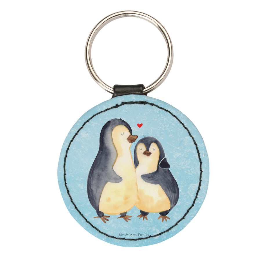Rund Schlüsselanhänger Pinguin umarmend - Eisblau
