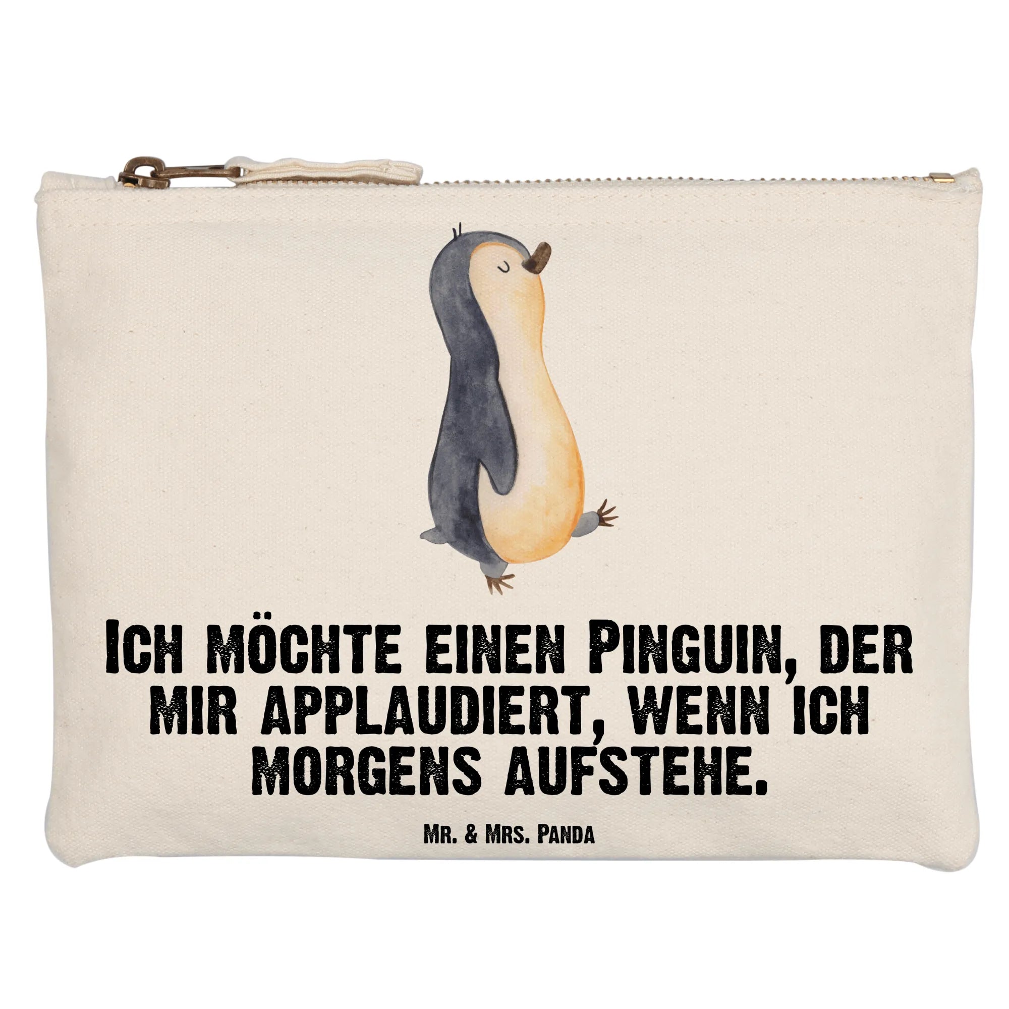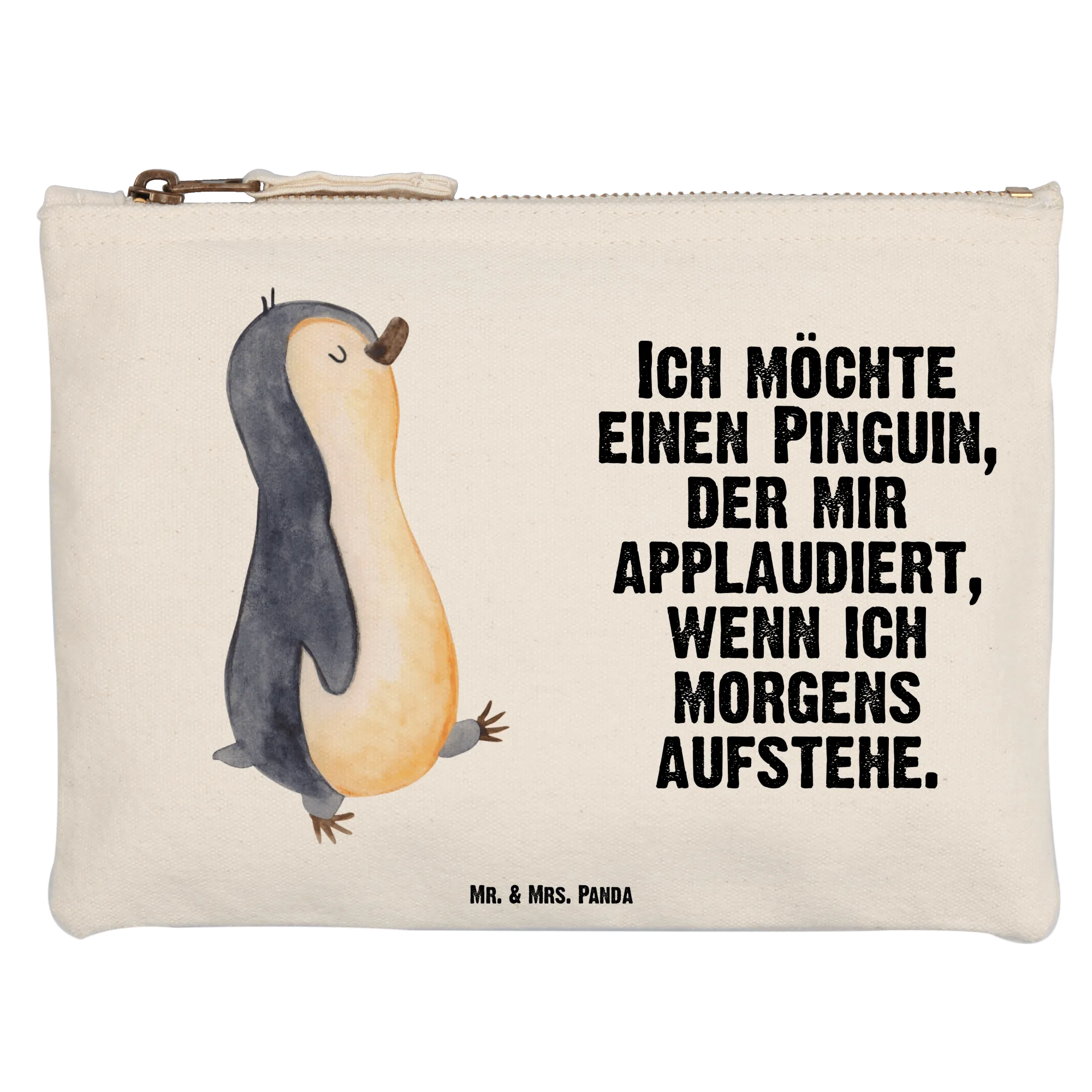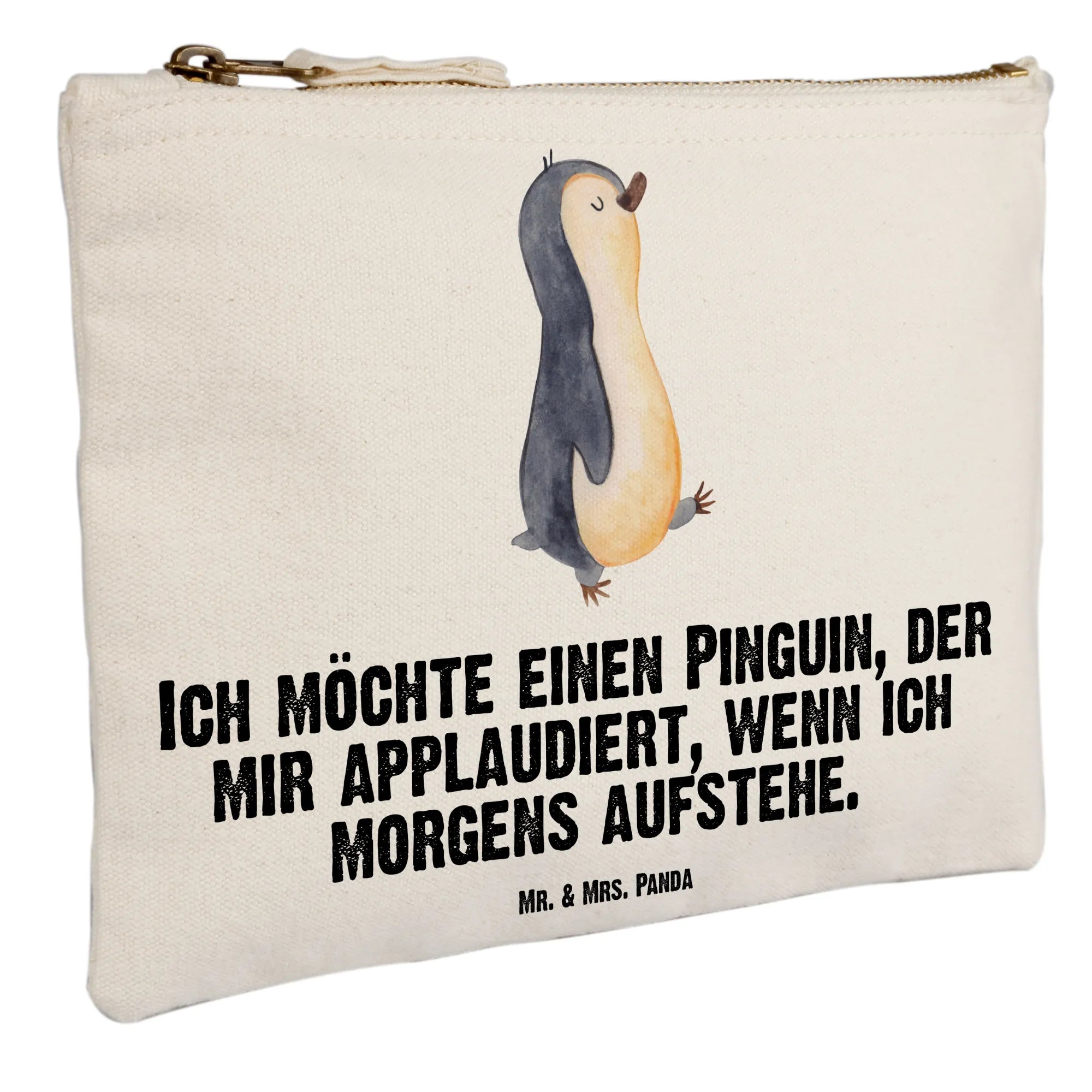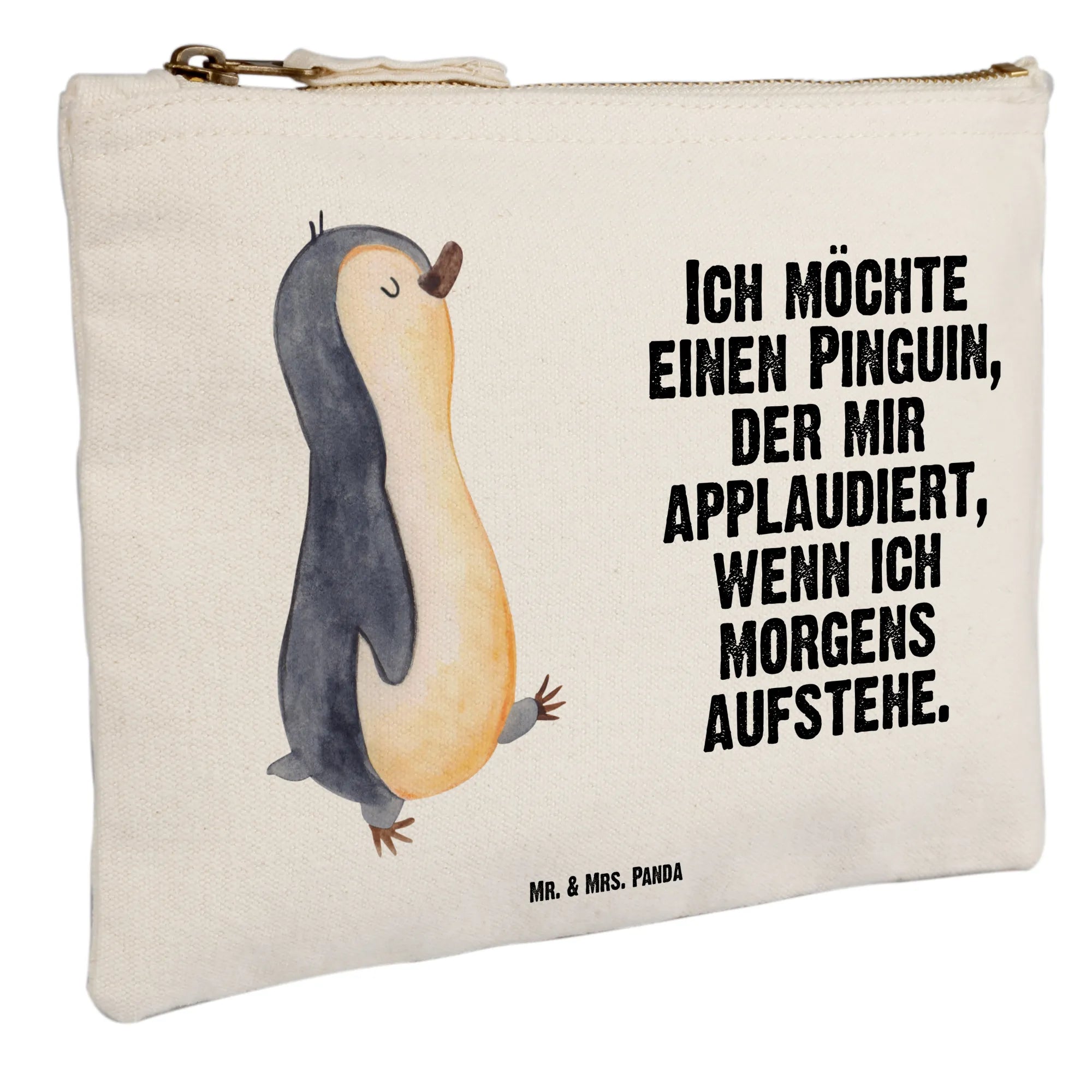 Der niedliche Pinguin, der fröhlich marschiert, bringt ein Lächeln auf dein Gesicht - egal, ob du Frühaufsteher oder Langschläfer bist! Mit dem Spruch: 'Ich möchte einen Pinguin, der mir applaudiert, wenn ich morgens aufstehe.' ist diese Schminktasche ein idealer Motivator für jeden Start in den Tag.