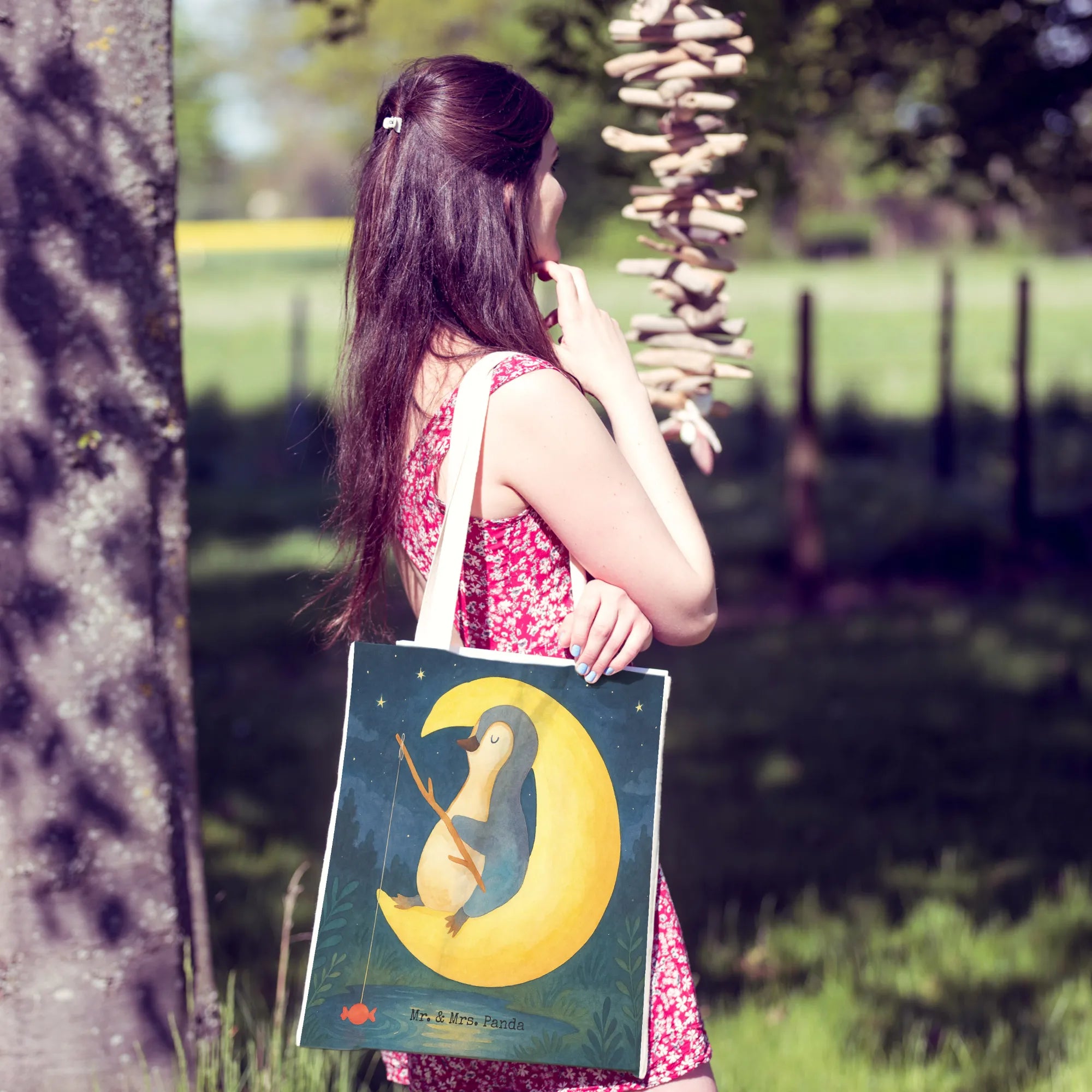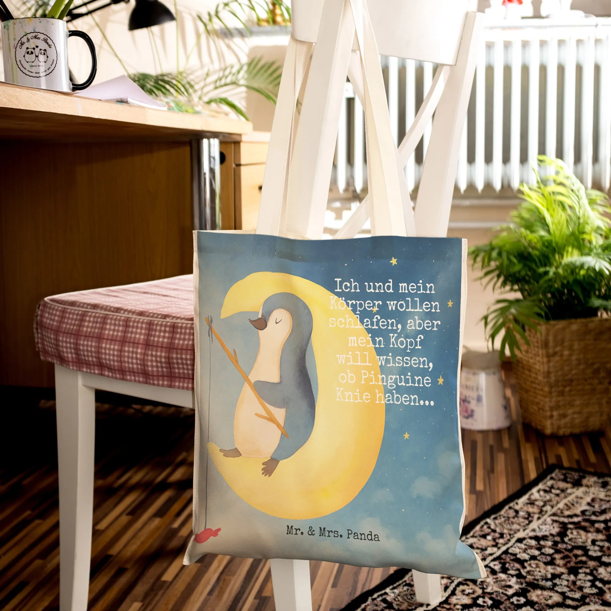 Einkaufstasche Pinguin Mond Design - mit Spruch