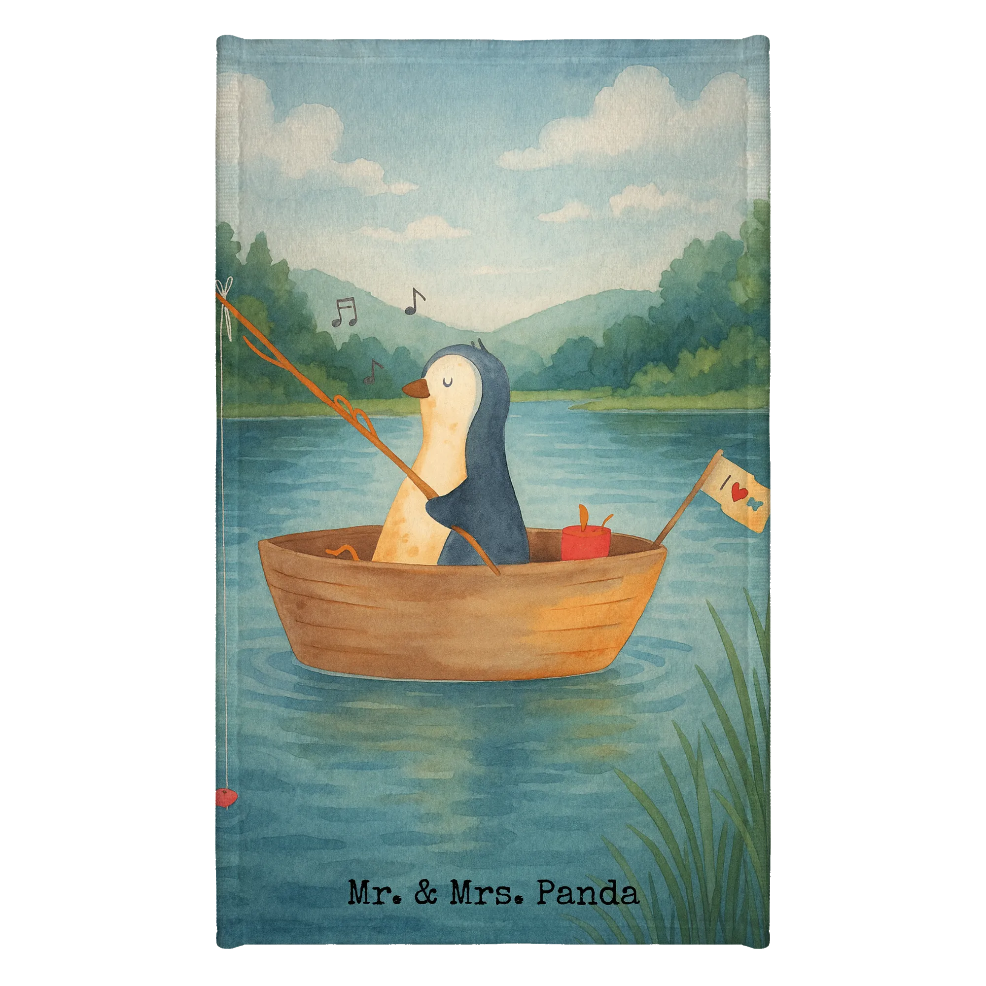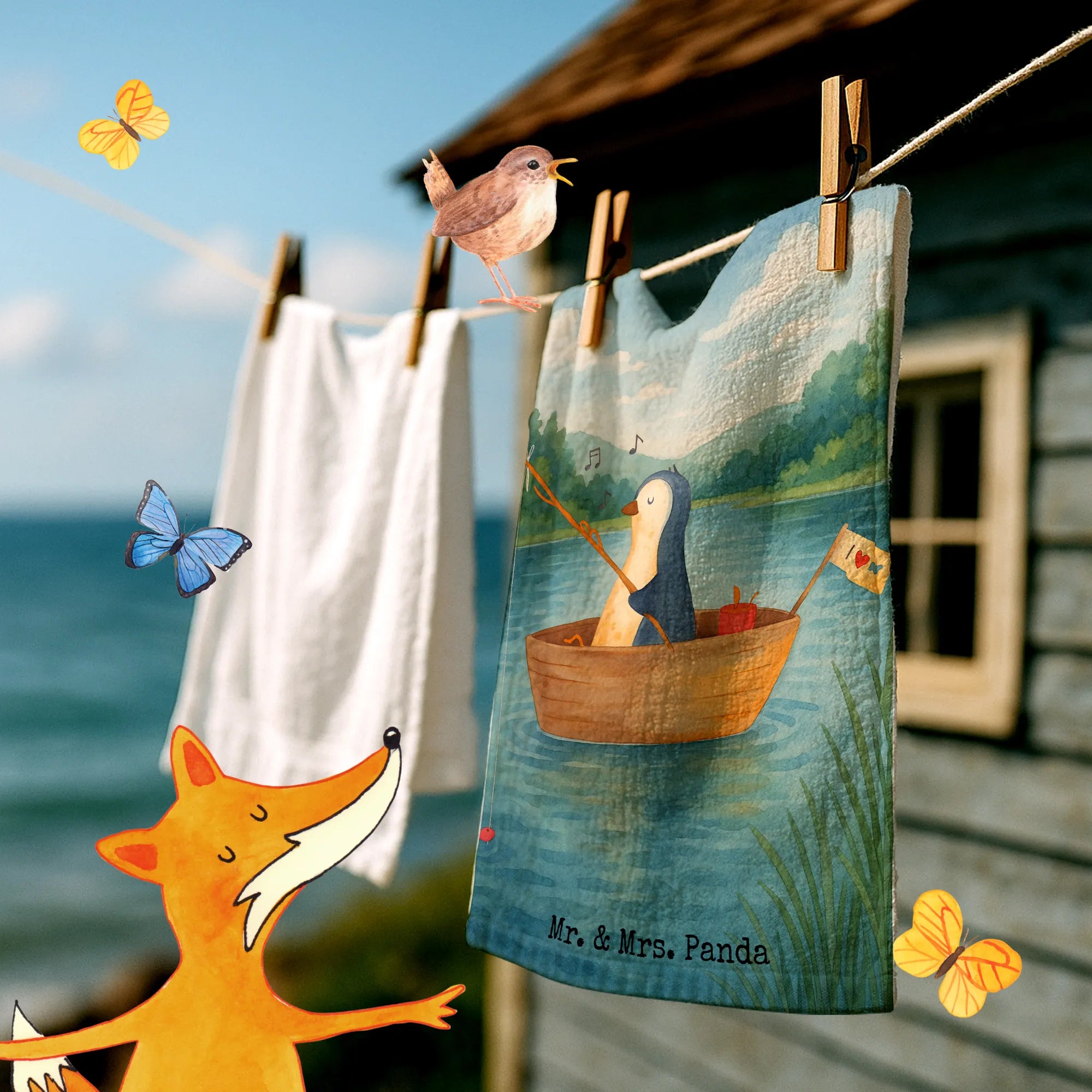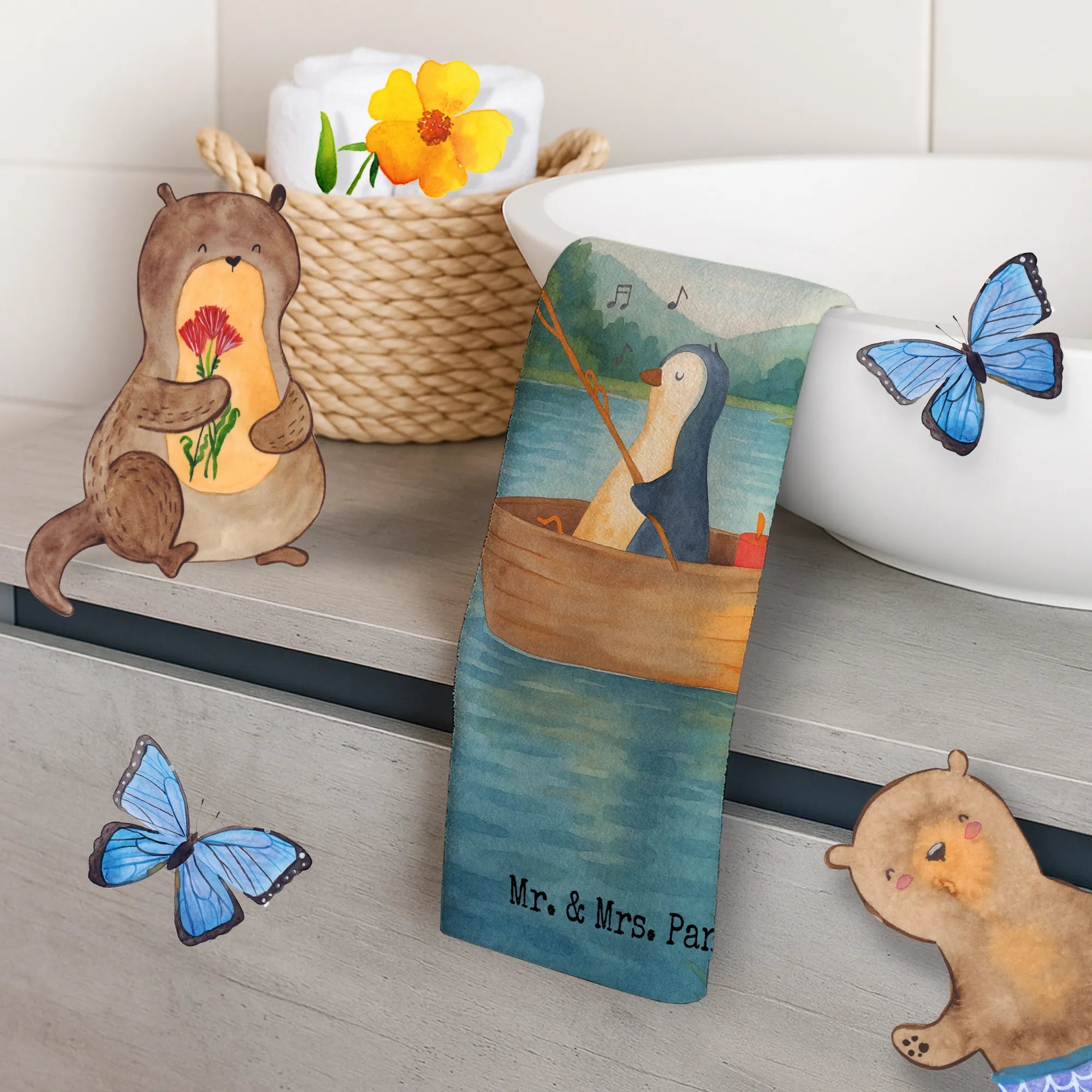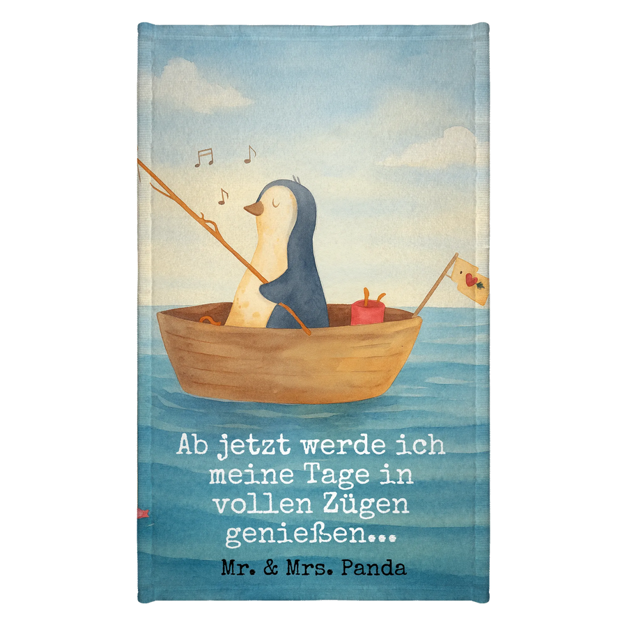 Gästehandtuch Pinguin Angelboot Design - mit Spruch