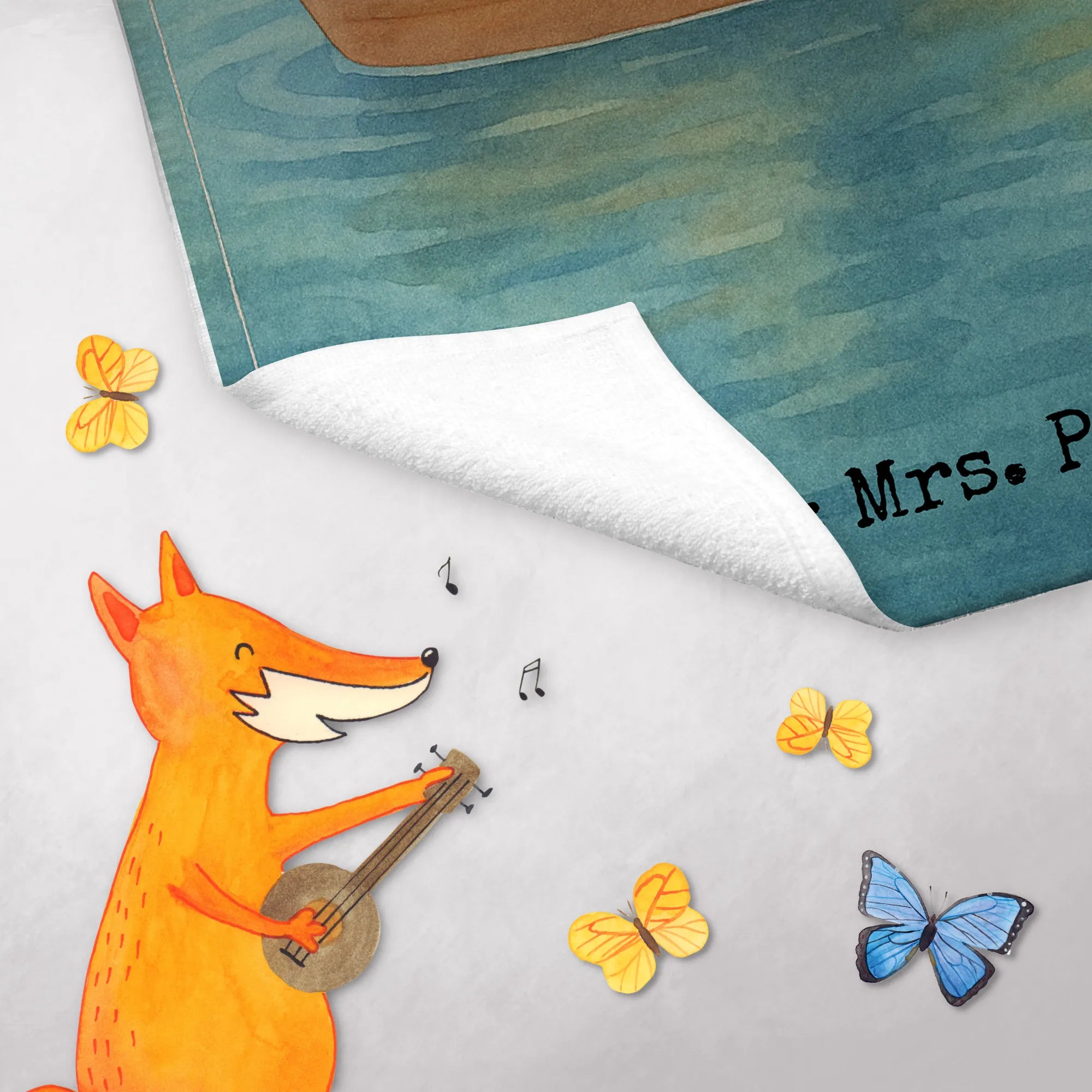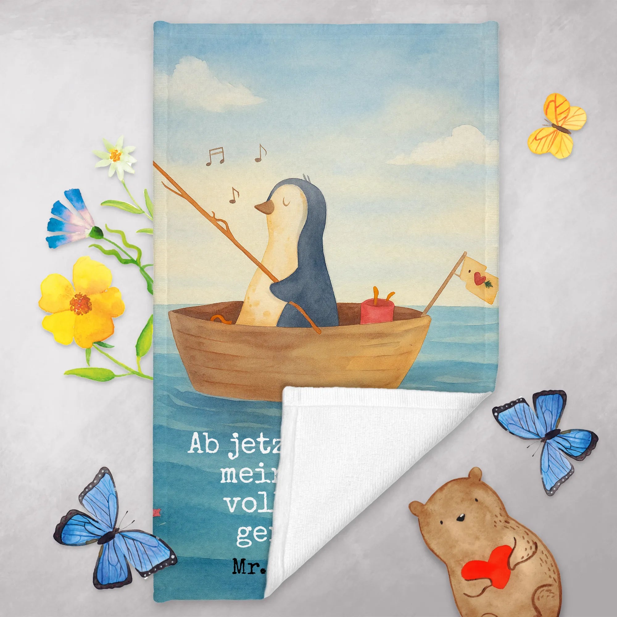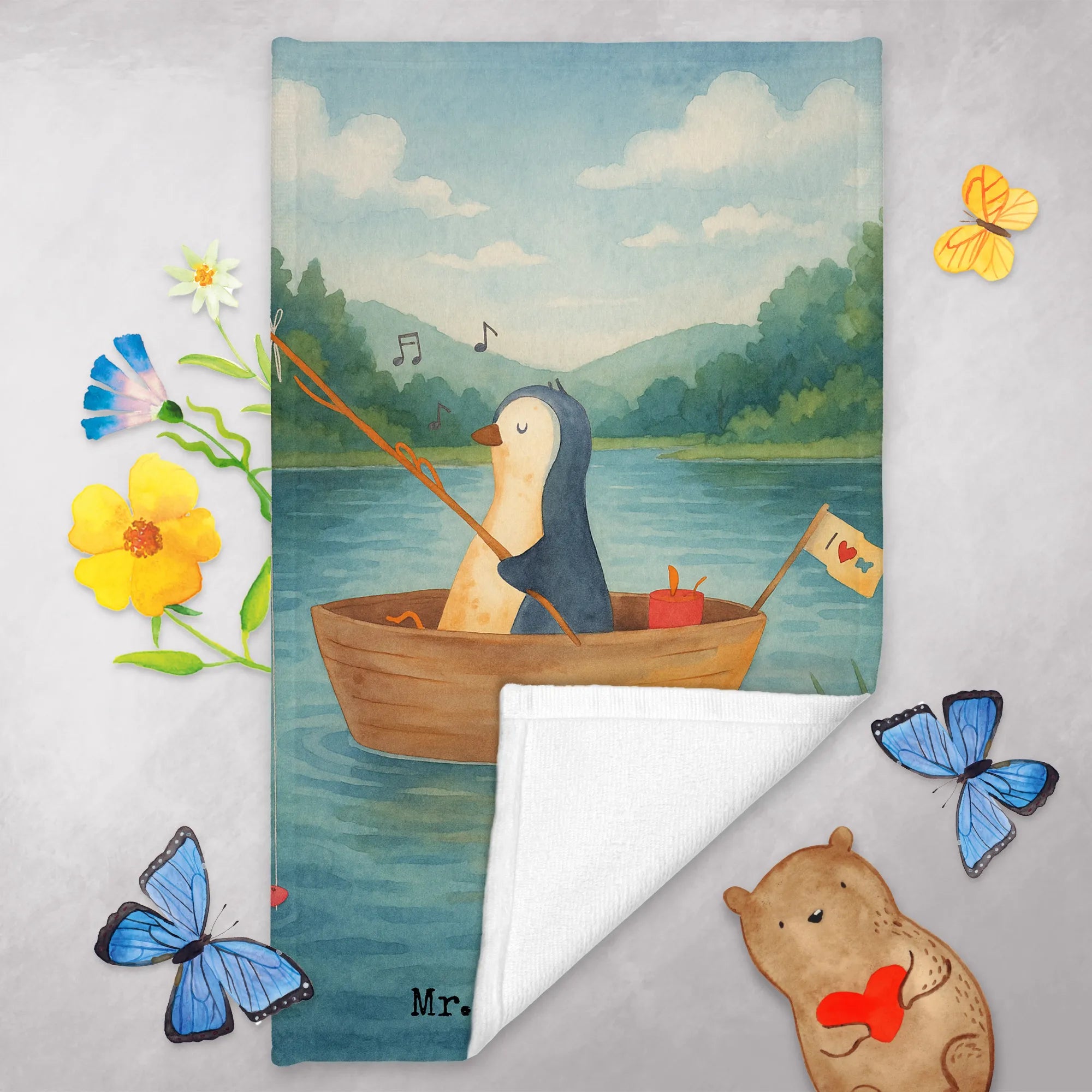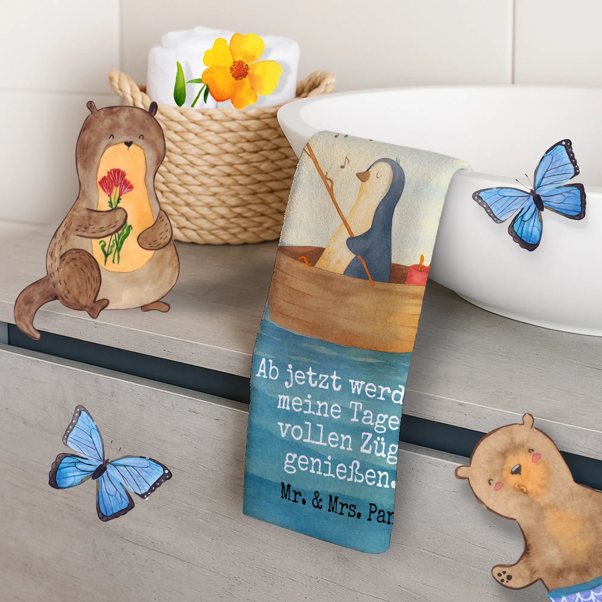 Gästehandtuch Pinguin Angelboot Design - mit Spruch