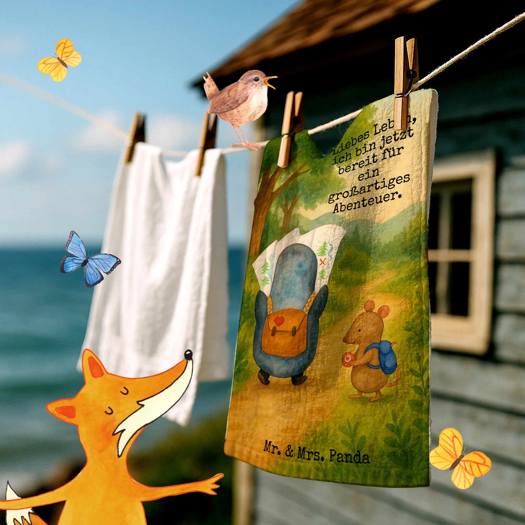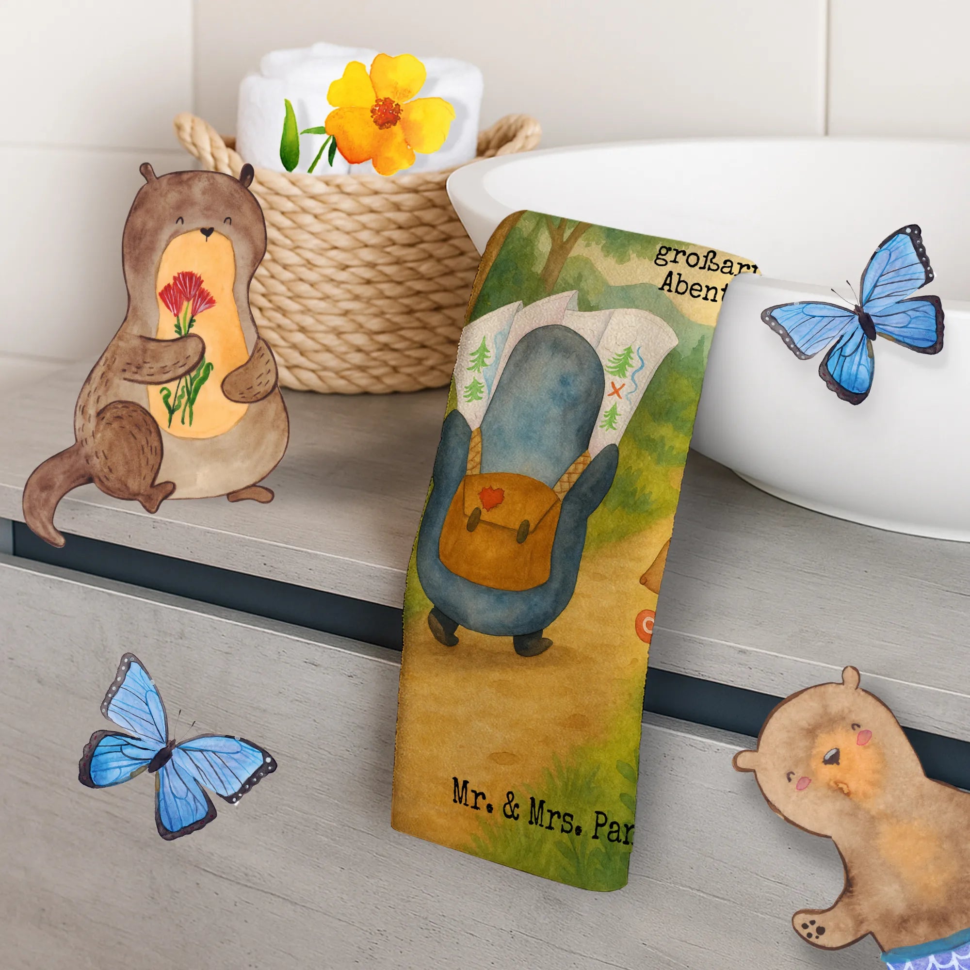 Gästehandtuch Pinguin & Maus Wanderer Design - mit Spruch