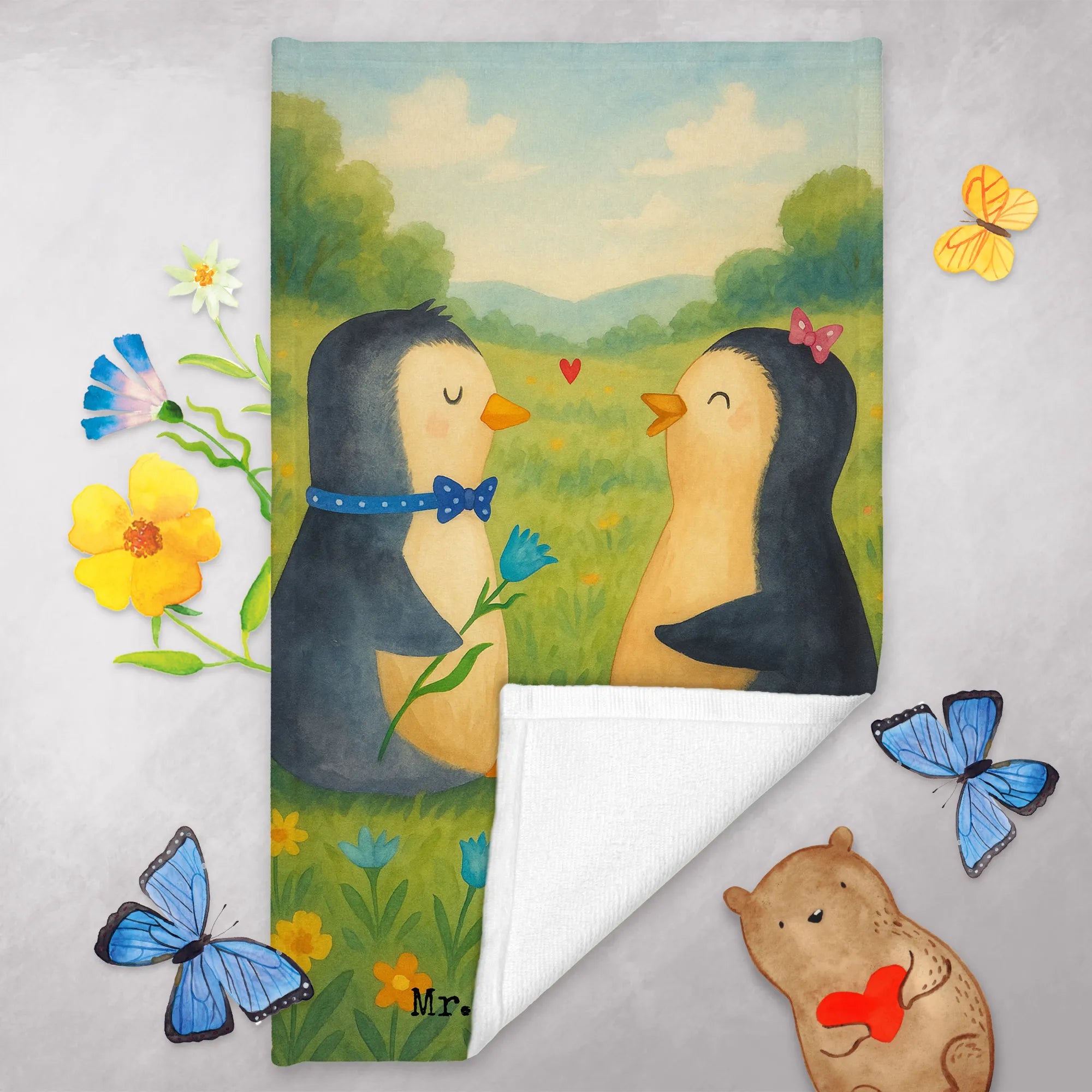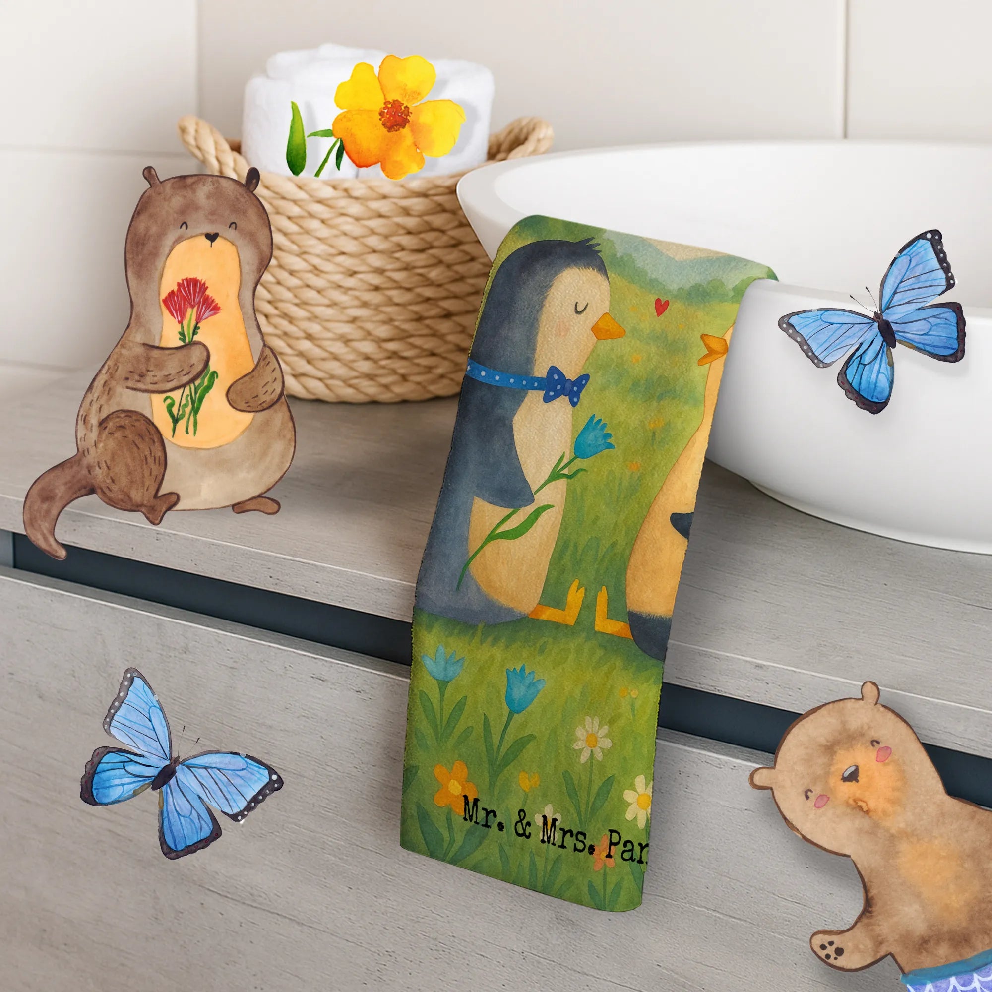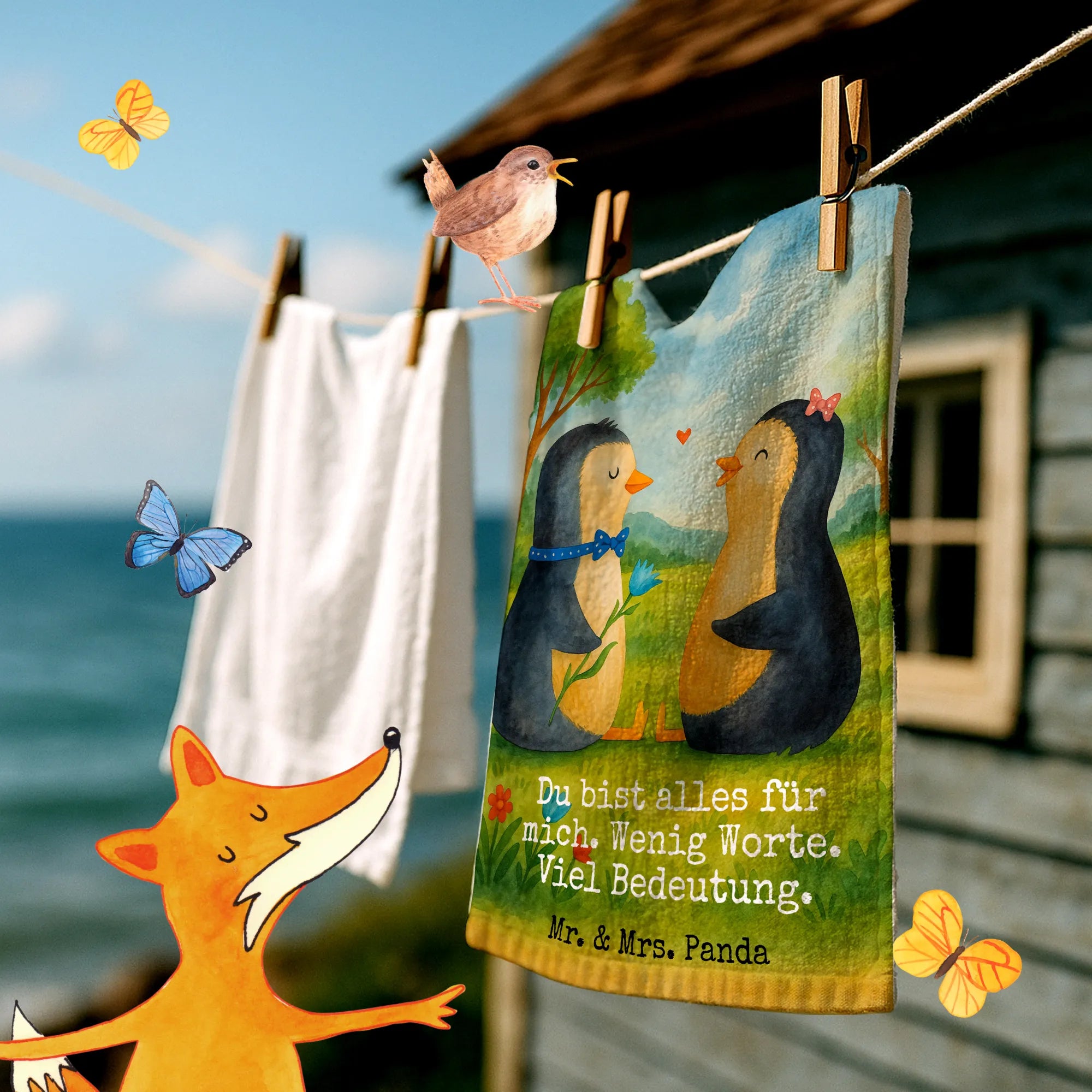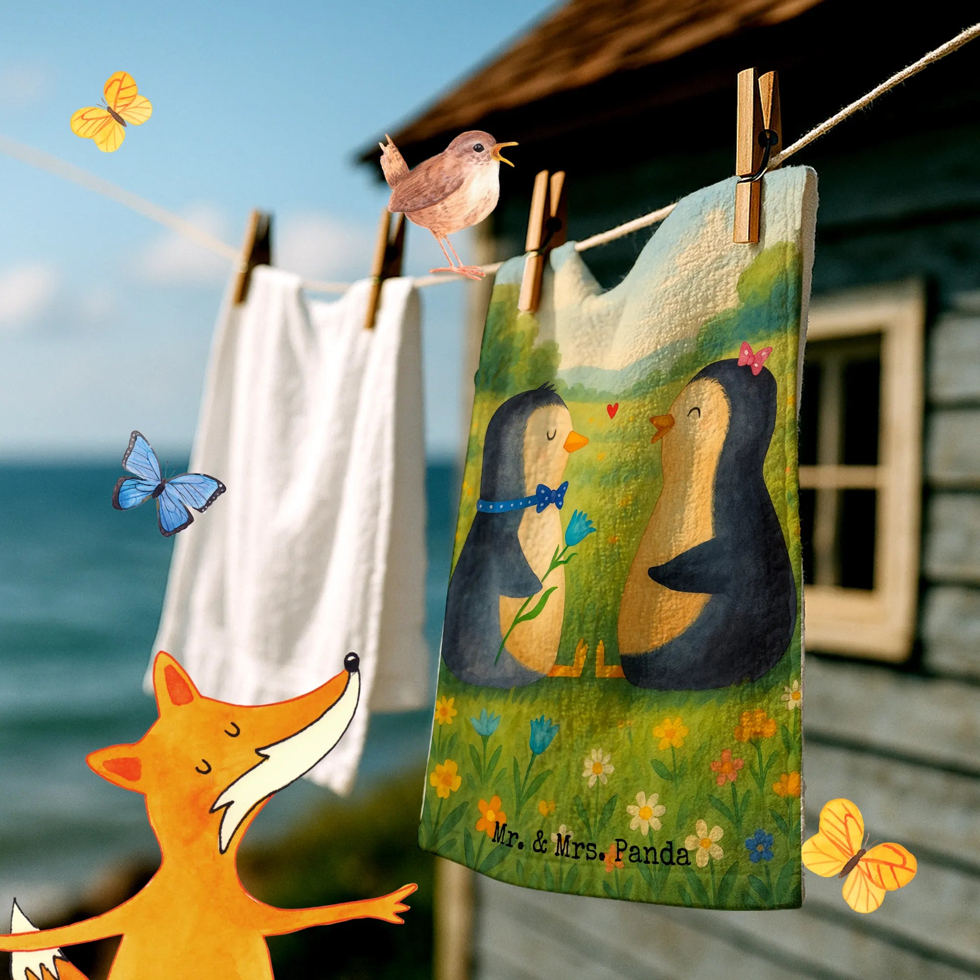 Gästehandtuch Pinguin Pärchen Design - mit Spruch