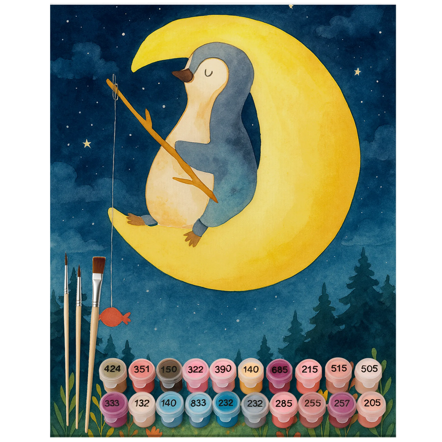 Malen nach Zahlen Pinguin Mond Design - Ohne Rahmen - 24 Farben (Standard)