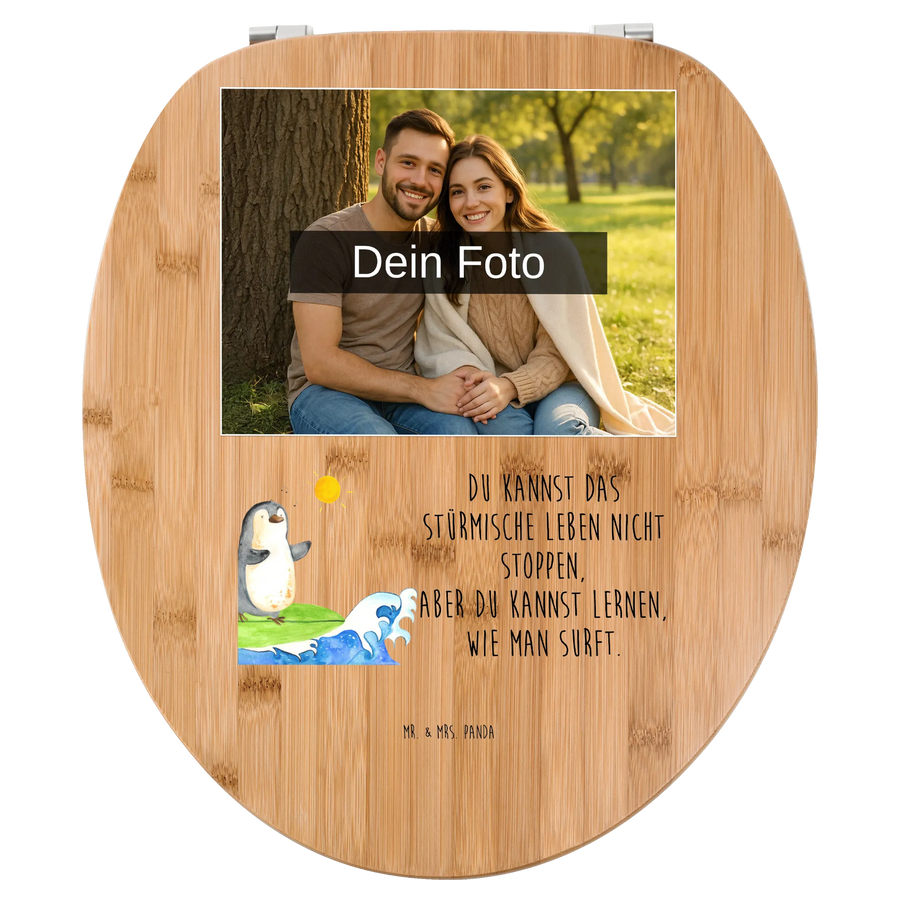 Personalisierter Foto WC Sitz Motiv Pinguin Surfer - Bambus