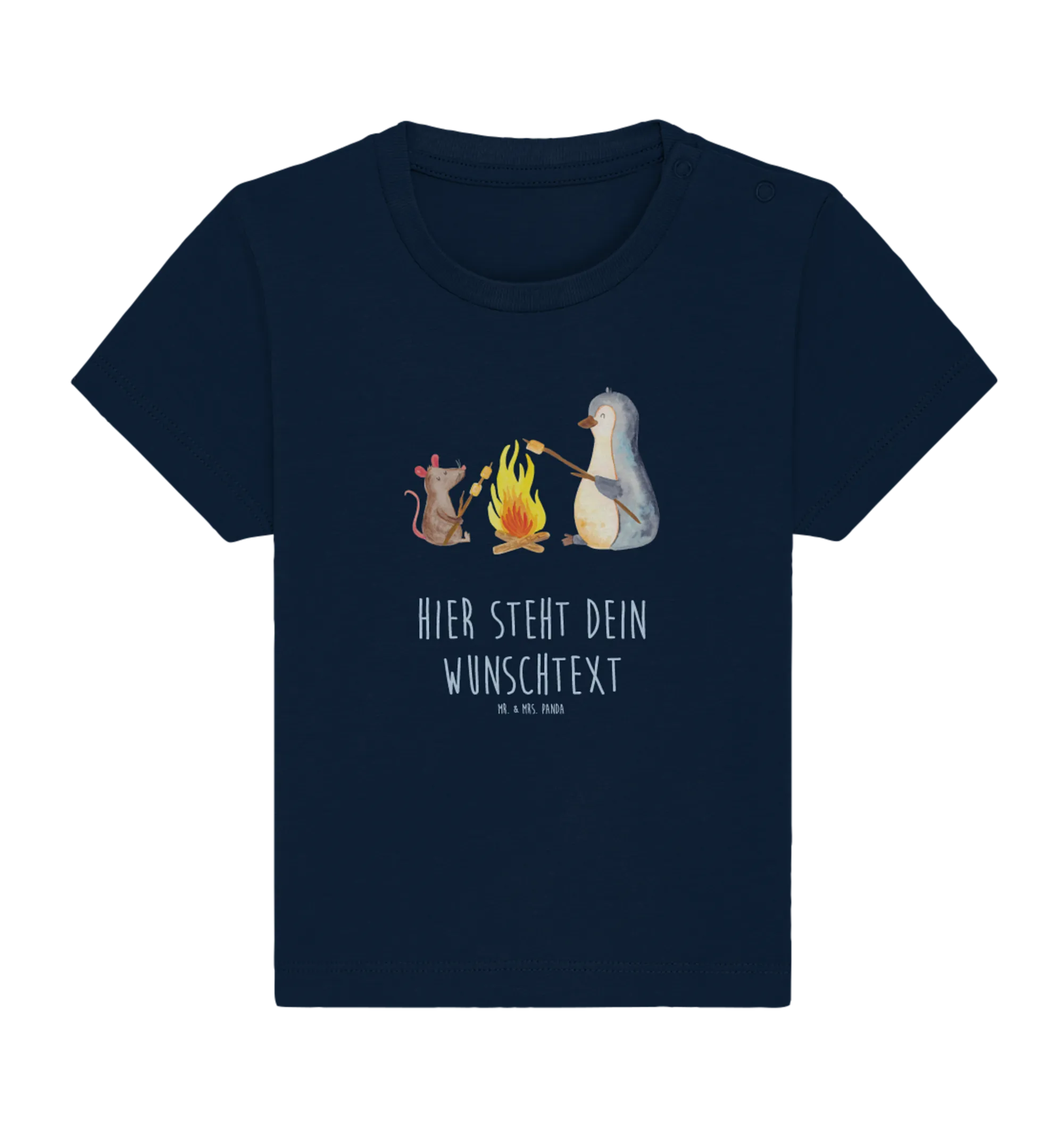 Das personalisierte Baby T-Shirt mit dem zauberhaften Motiv "Pinguin Lagerfeuer" von Mr. & Mrs. Panda ist das perfekte Geschenk für kleine Entdecker und ihre Eltern!