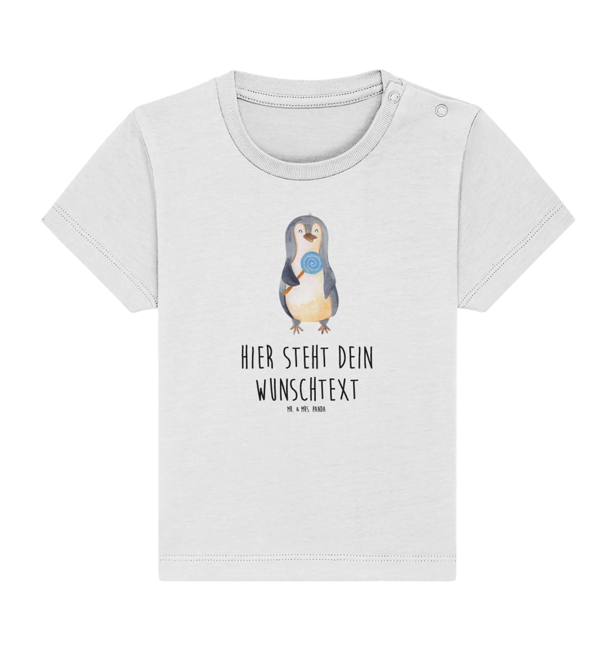 Das personalisierte Baby T-Shirt Pinguin Lolli aus der Pinguin-Kollektion von Mr. & Mrs. Panda ist der perfekte Begleiter für kleine Rabauken und süße Fräuleins! Wenn du auf der Suche nach einem einzigartigen Geschenk für einen besonderen Anlass bist, wie etwa eine Babyparty, den ersten Geburtstag oder einfach nur so, dann liegt mit diesem Shirt genau richtig. Es begleitet nicht nur Kinder durch die ersten Jahre, sondern macht sie auch zu kleinen Fashion-Ikonen.