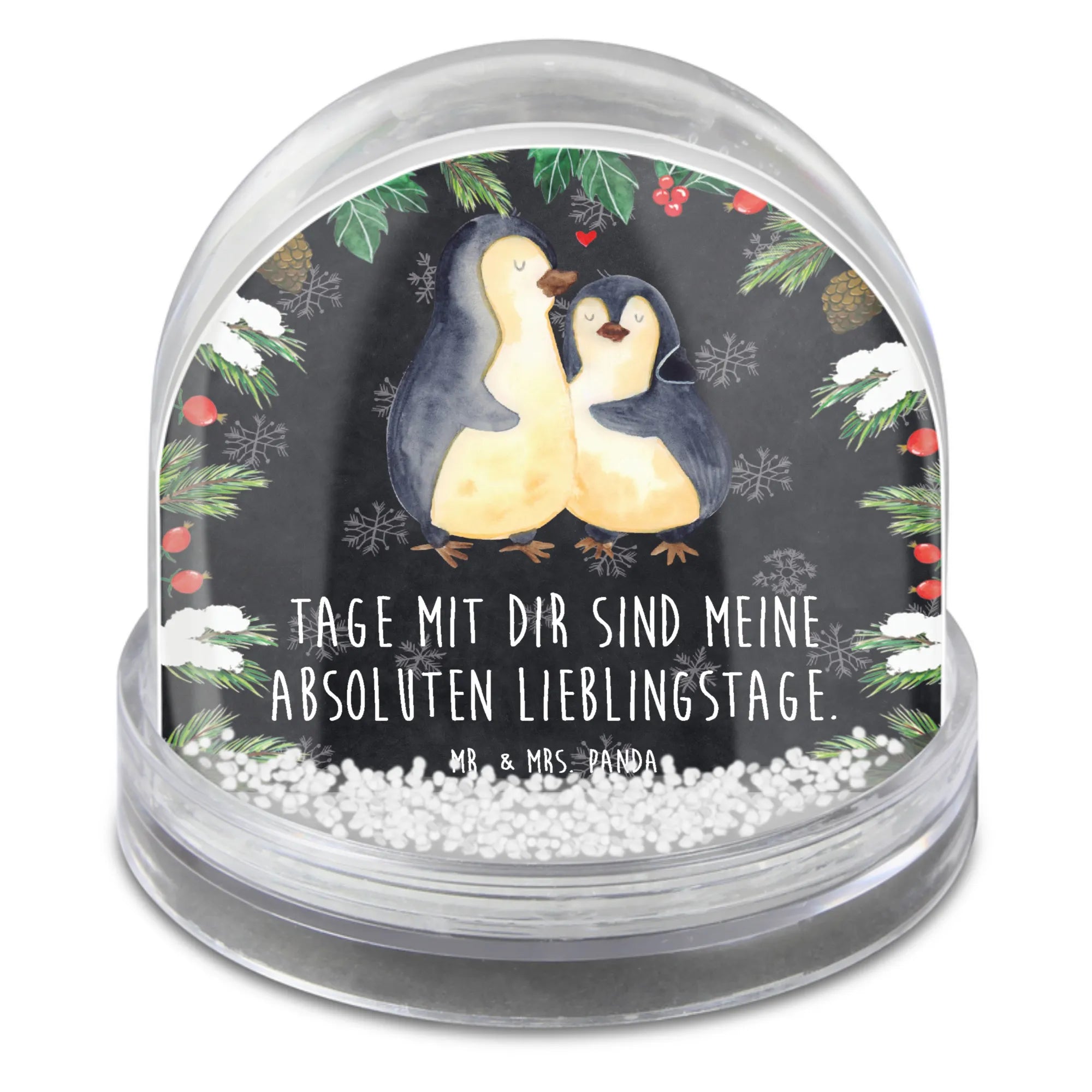 Die wunderschöne Schneekugel mit dem Motiv "Pinguin umarmend" von Mr. & Mrs. Panda ist das perfekte Geschenk für alle, die die Liebe und Freundschaft feiern möchten! ❤️