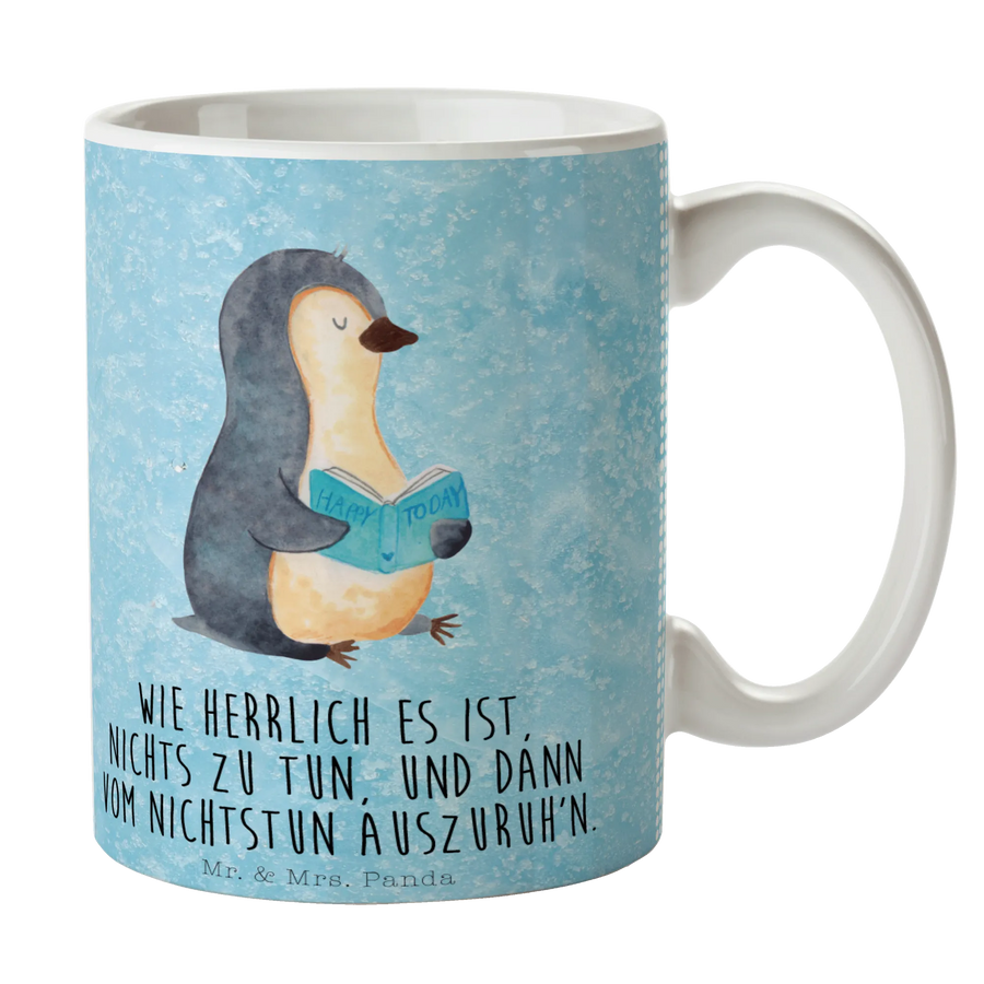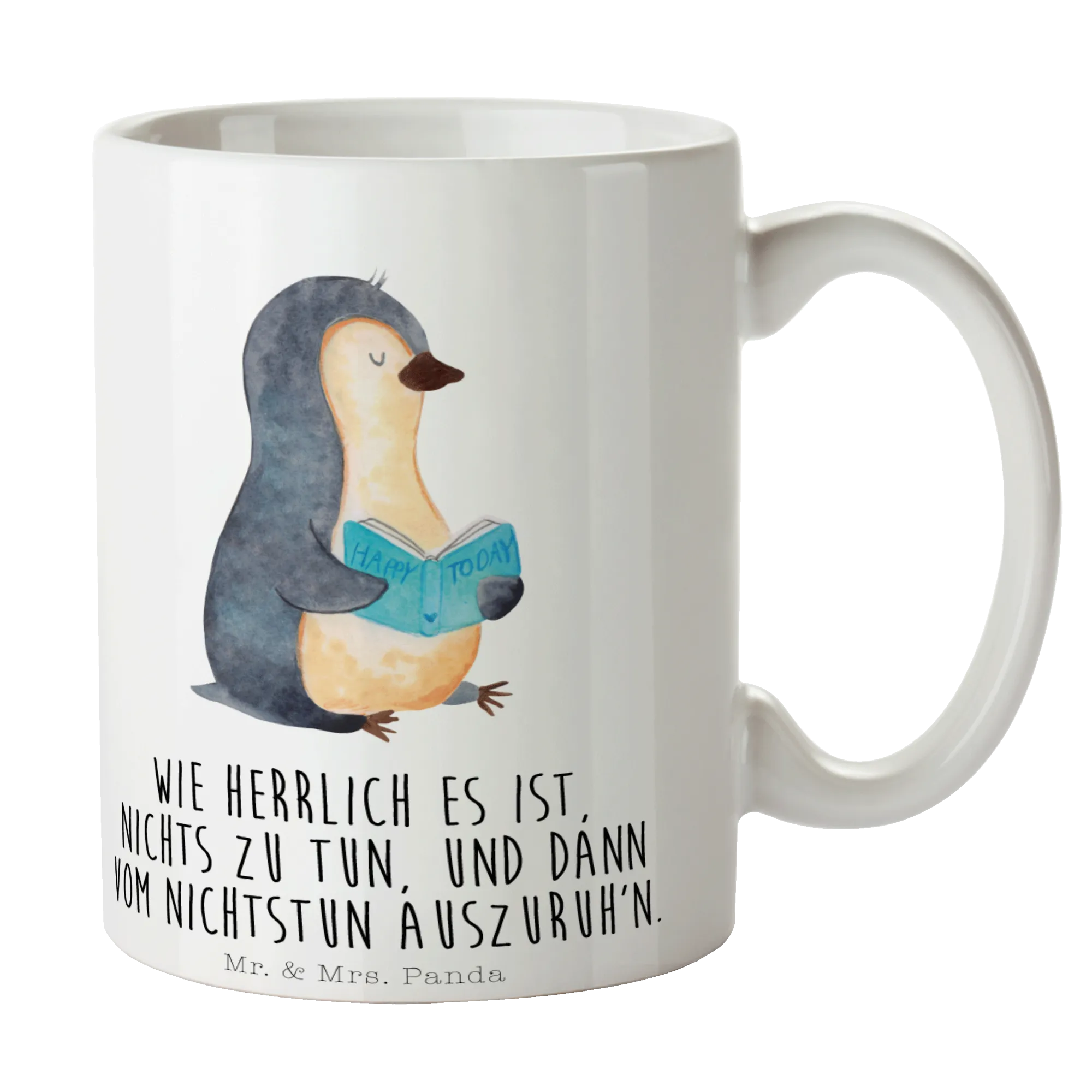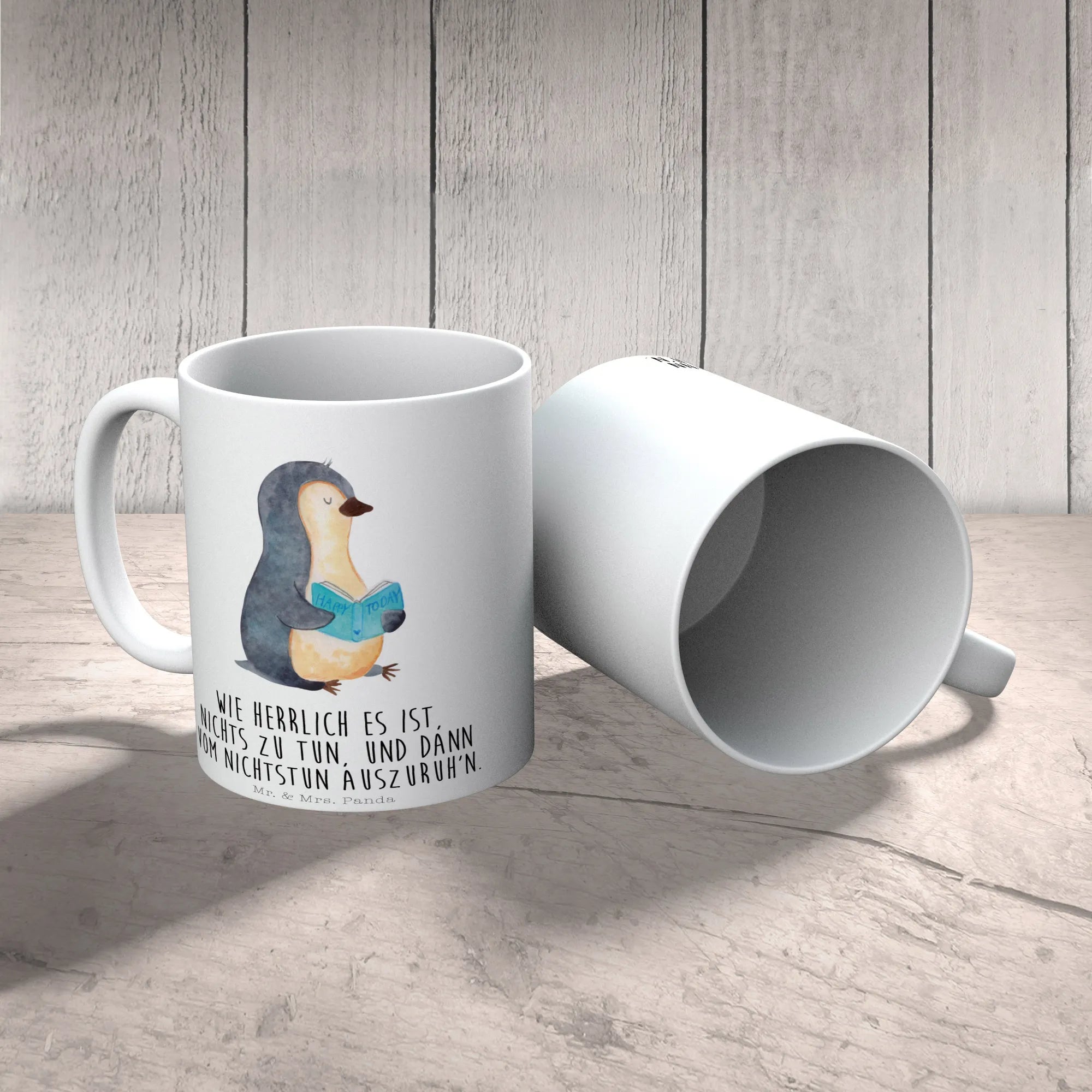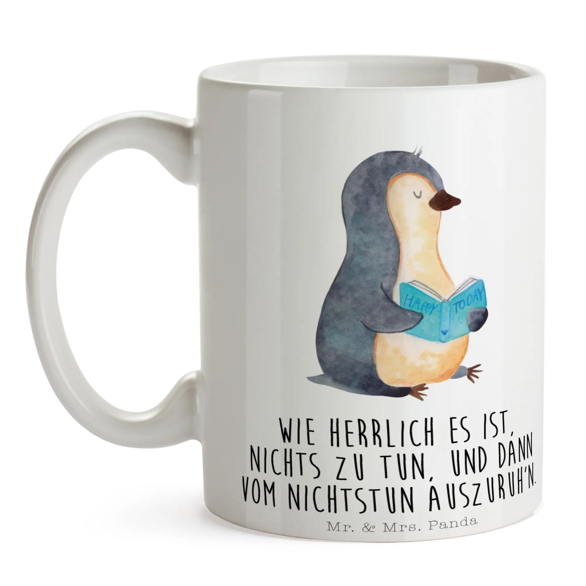 Tasse Pinguin Buch Teetasse, Porzellantasse, Keramiktasse, Geschenktasse, Tasse mit Zitaten, Kaffeetasse, Tasse, Bürotasse, Tasse mit Motiven, Pinguin, Bücherwurm, Lesen, Ferien, Freizeit, Nichtstun, Buch, Urlaub, Pinguine, Faulenzen